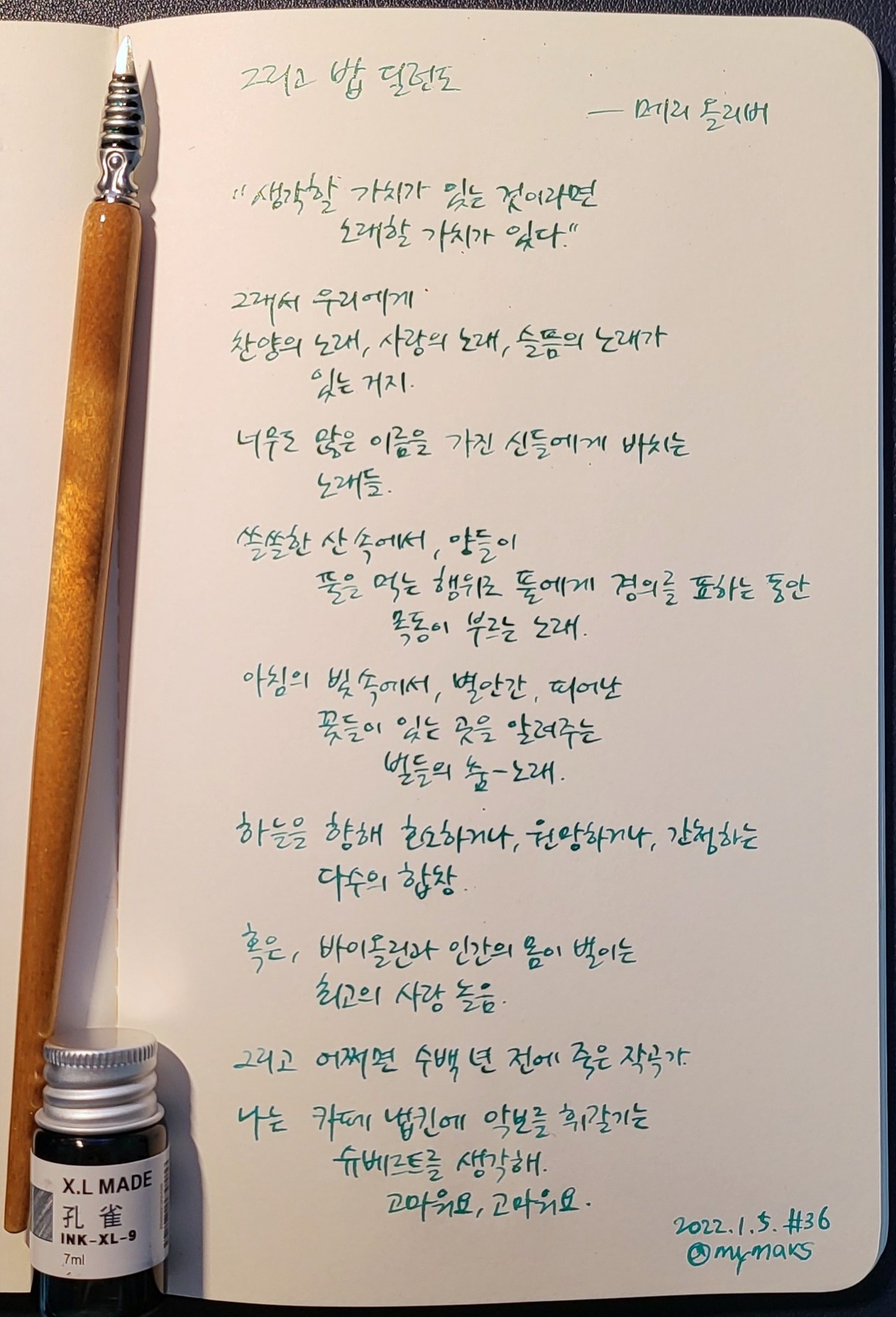 #그리고밥딜런도 #메리올리버 #천개의아침 #너에게들려주는시 #poetrytoyou #시 #시낭독 #시낭송 #낭독일기 #시필사 #손글씨 #닙펜 #딥펜 #펜글씨 #마이마르스 #mymars #나의화성