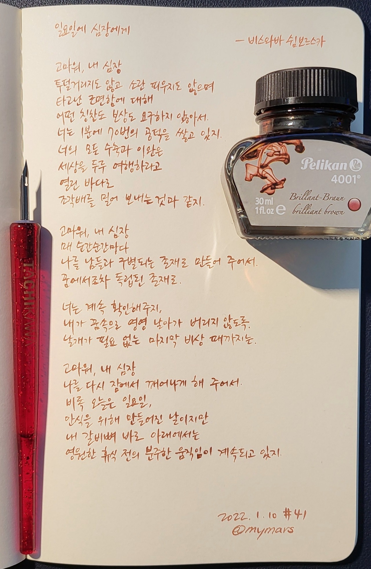 #일요일에심장에게 #비스와바쉼보르스카 #비슬라바쉼보르스카 #너에게들려주는시 #poetrytoyou #시 #시낭독 #시낭송 #낭독일기 #시필사 #손글씨 #닙펜 #딥펜 #펜글씨 #마이마르스 #mymars #나의화성