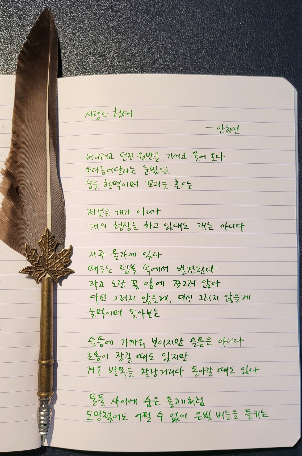 #사랑의형태 #안희연 #여름언덕에서배운것 #너에게들려주는시 #poetrytoyou #시 #시낭독 #시낭송 #낭독일기 #시필사 #손글씨 #닙펜 #딥펜 #펜글씨 #마이마르스 #mymars #나의화성 #나의발렌타인에게