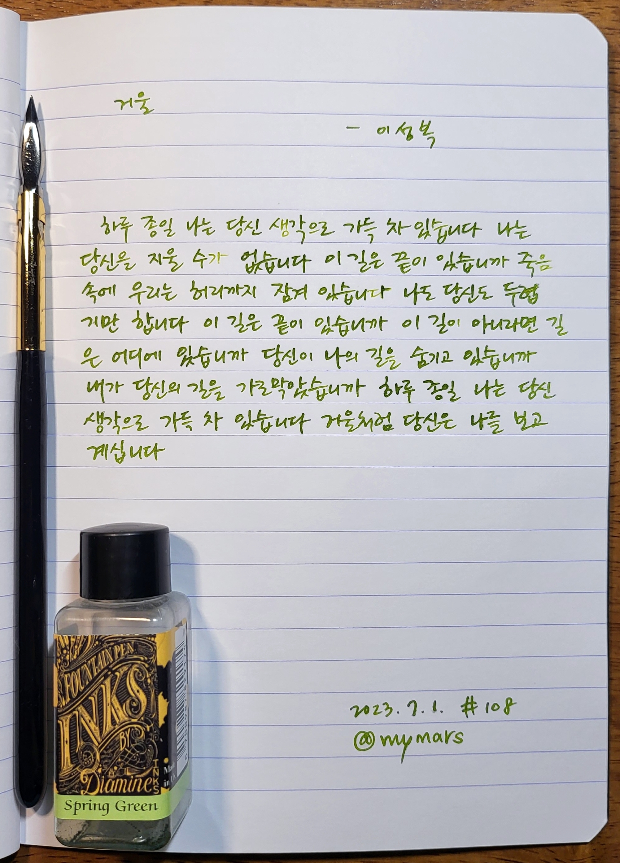 [2020 시필사. 140일 차] 거울 - 이성복 하루 종일 나는 당신 생각으로 가득차 있습니다 나는 당신을 지울 수가 없습니다 이 길은 끝이 있습니까 죽음 속에 우리는 허리까지 잠겨 있습니다 나도 당