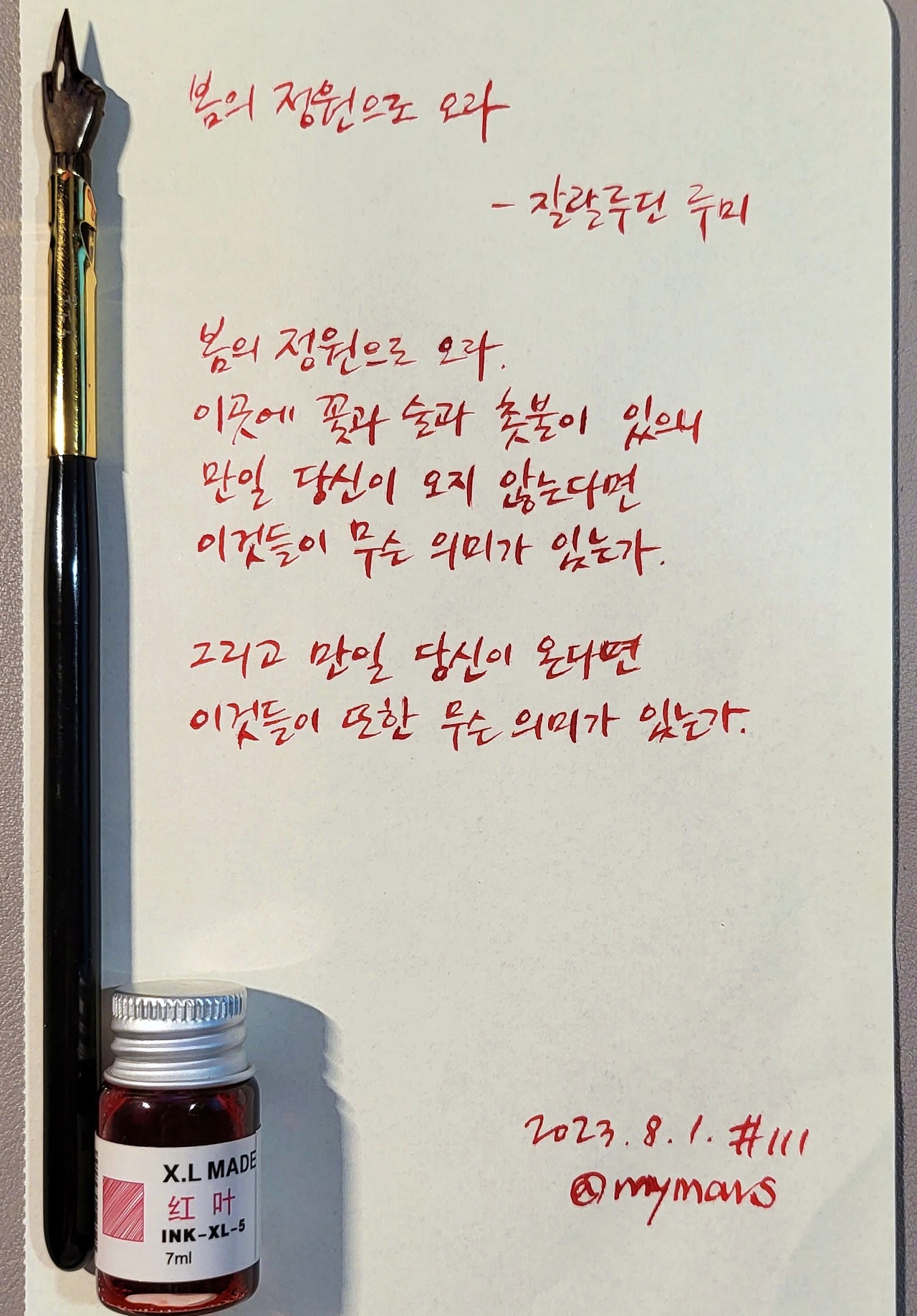 #봄의정원으로오라 #잘랄루딘루미 #사랑하라한번도상처받지않은것처럼 #류시화 #너에게들려주는시 #poetrytoyou #시 #시낭독 #시낭송 #낭독일기 #시필사 #손글씨 #닙펜 #딥펜 #펜글씨 #마이마르스 #mymars #나의화성