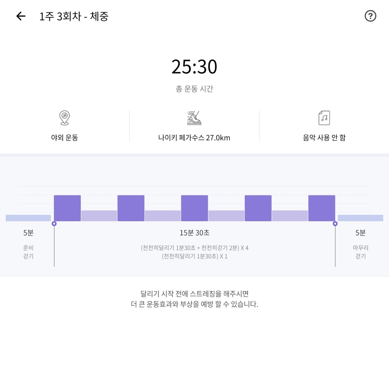1분 30초씩 5회 달리기 중에 반은 제대로 못했다.
