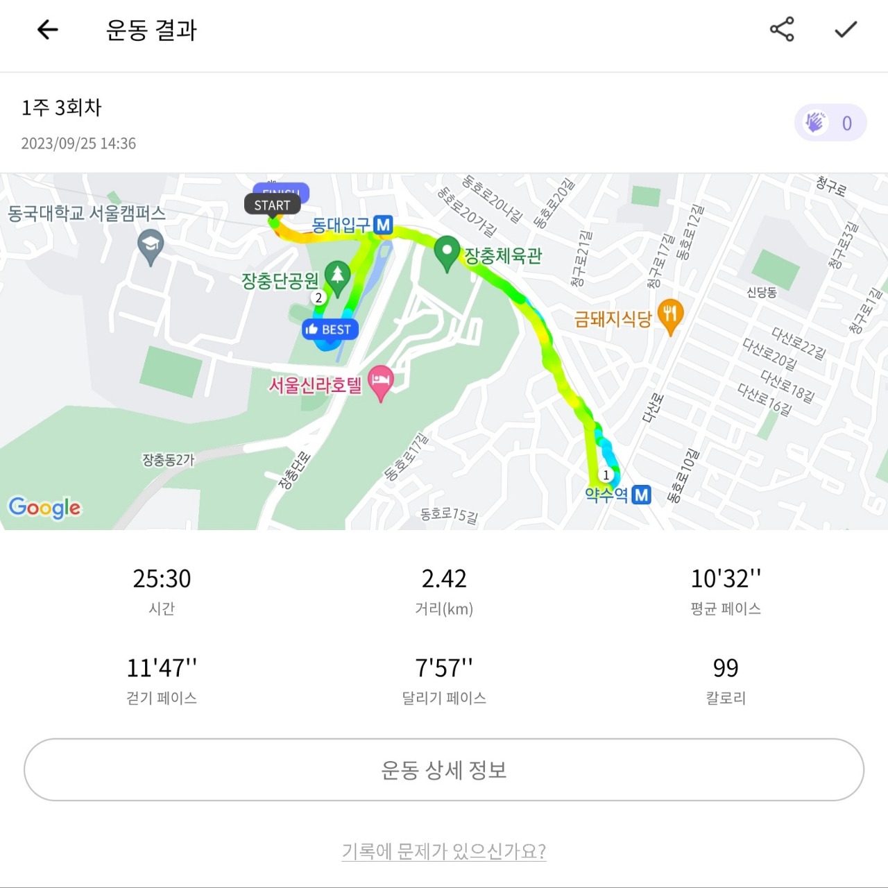 하지만 역시 일반 도로는 횡단보도에서 멈춰야 하거나 차나 사람이 많으면 속도를 줄일 수밖에 없어서 뛰기에는 적합하지 않다는 깨달음 ㅠㅠ