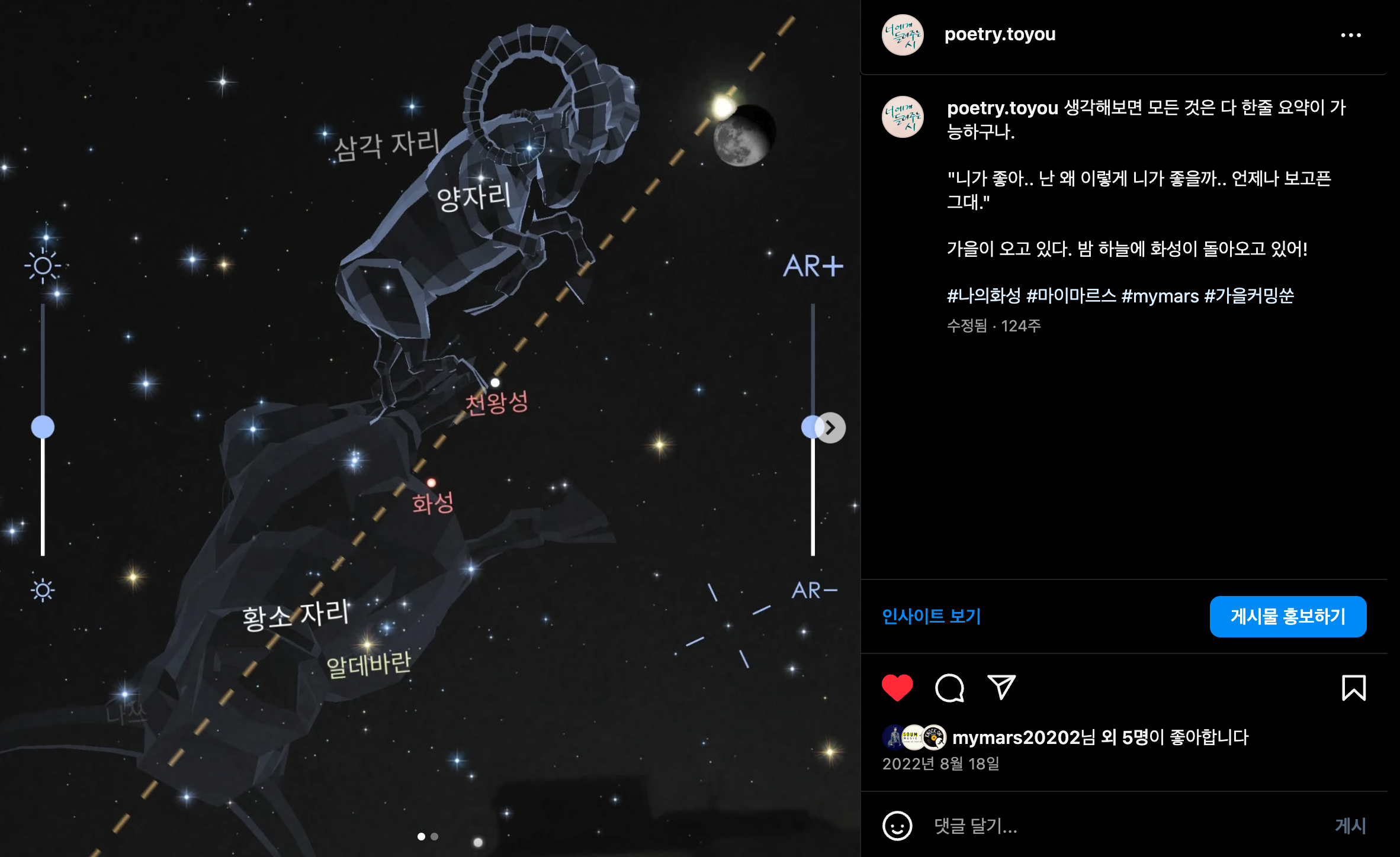 가을이 오고 있다. 밤 하늘에 화성이 돌아오고 있어!