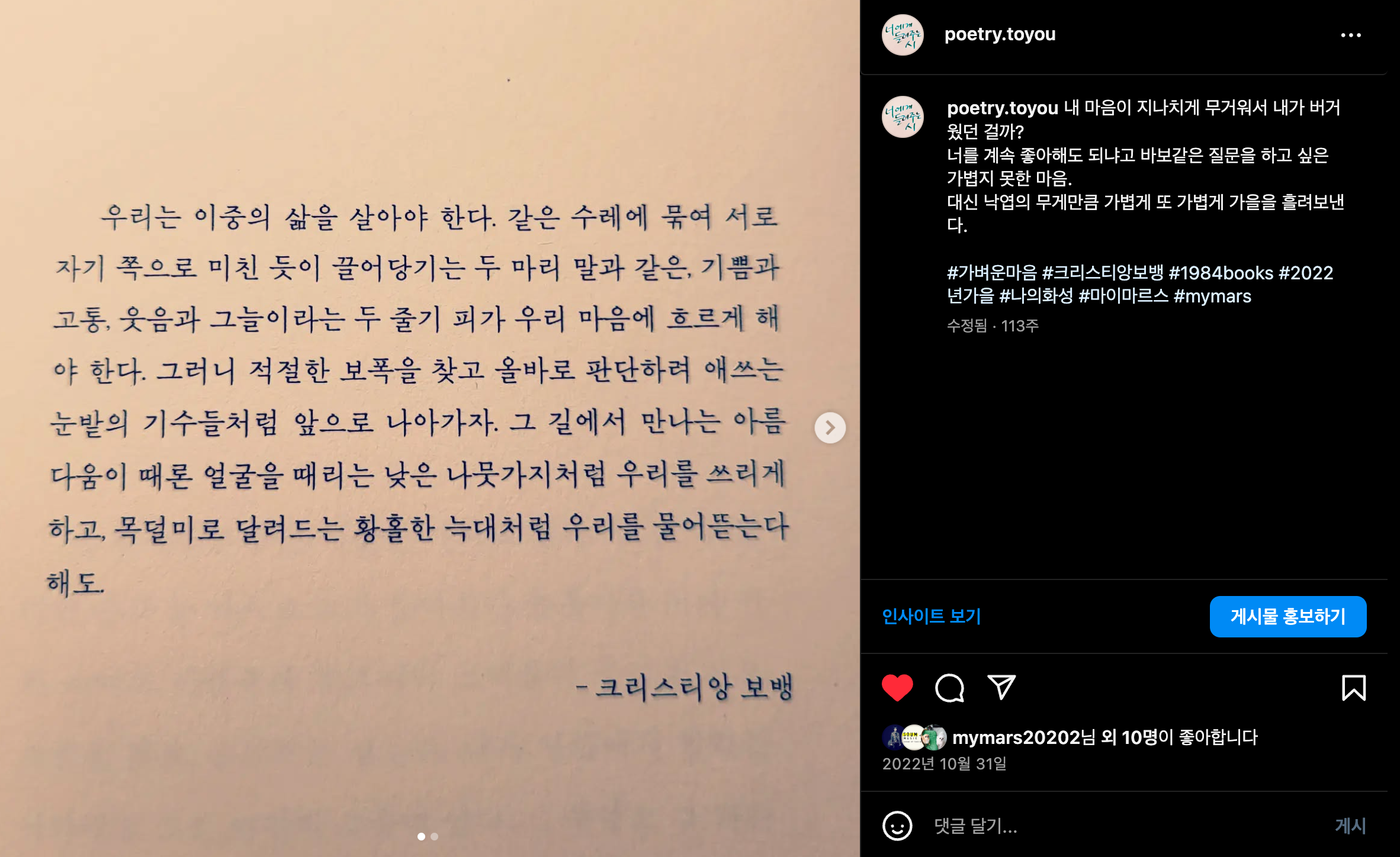 너를 계속 좋아해도 되냐고 바보같은 질문을 하고 싶은 가볍지 못한 마음.