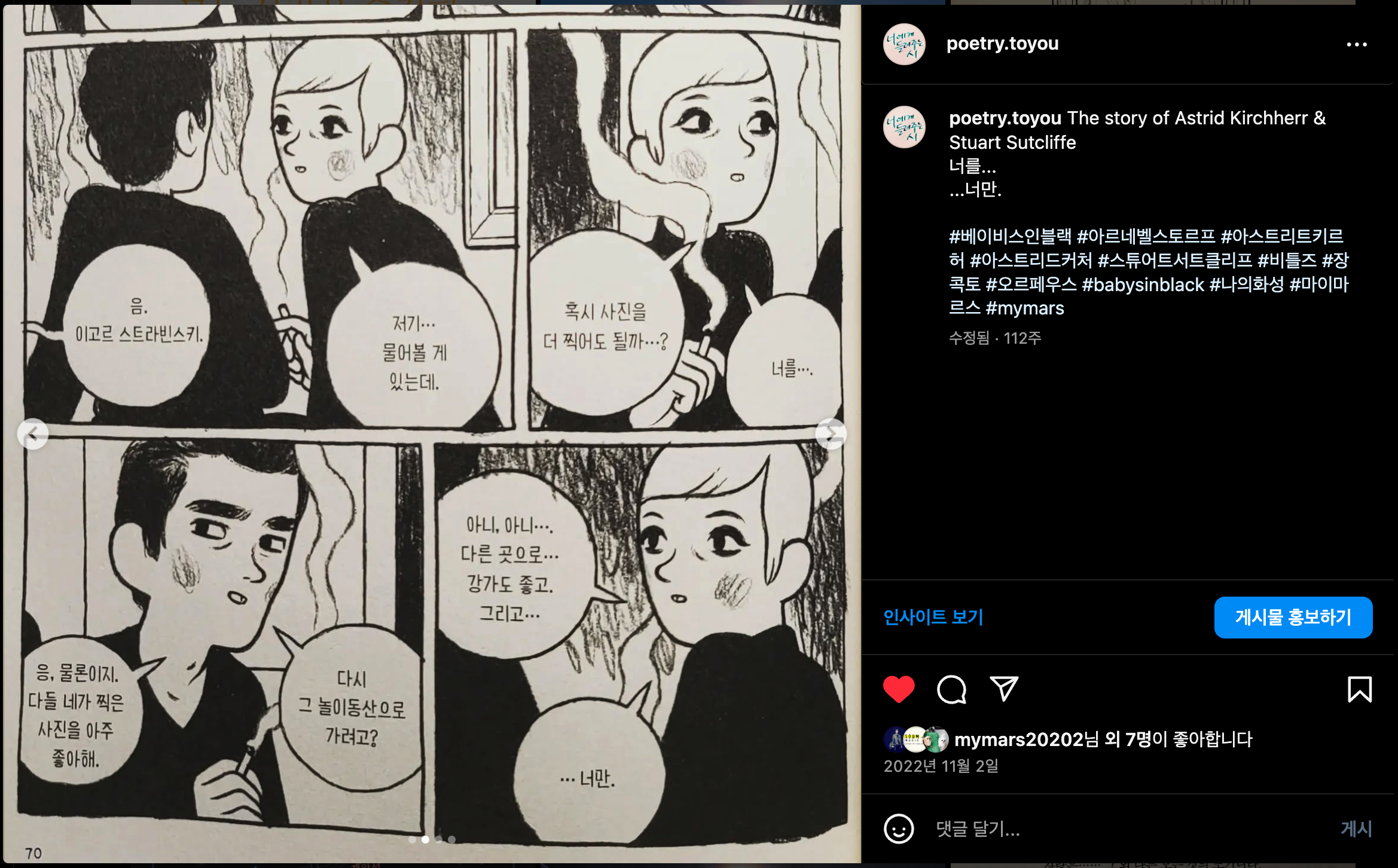 #베이비스인블랙 #아르네벨스토르프 #아스트리트키르허 #아스트리드커처 #스튜어트서트클리프 #비틀즈 #장콕토 #오르페우스 #babysinblack #나의화성 #마이마르스 #mymars