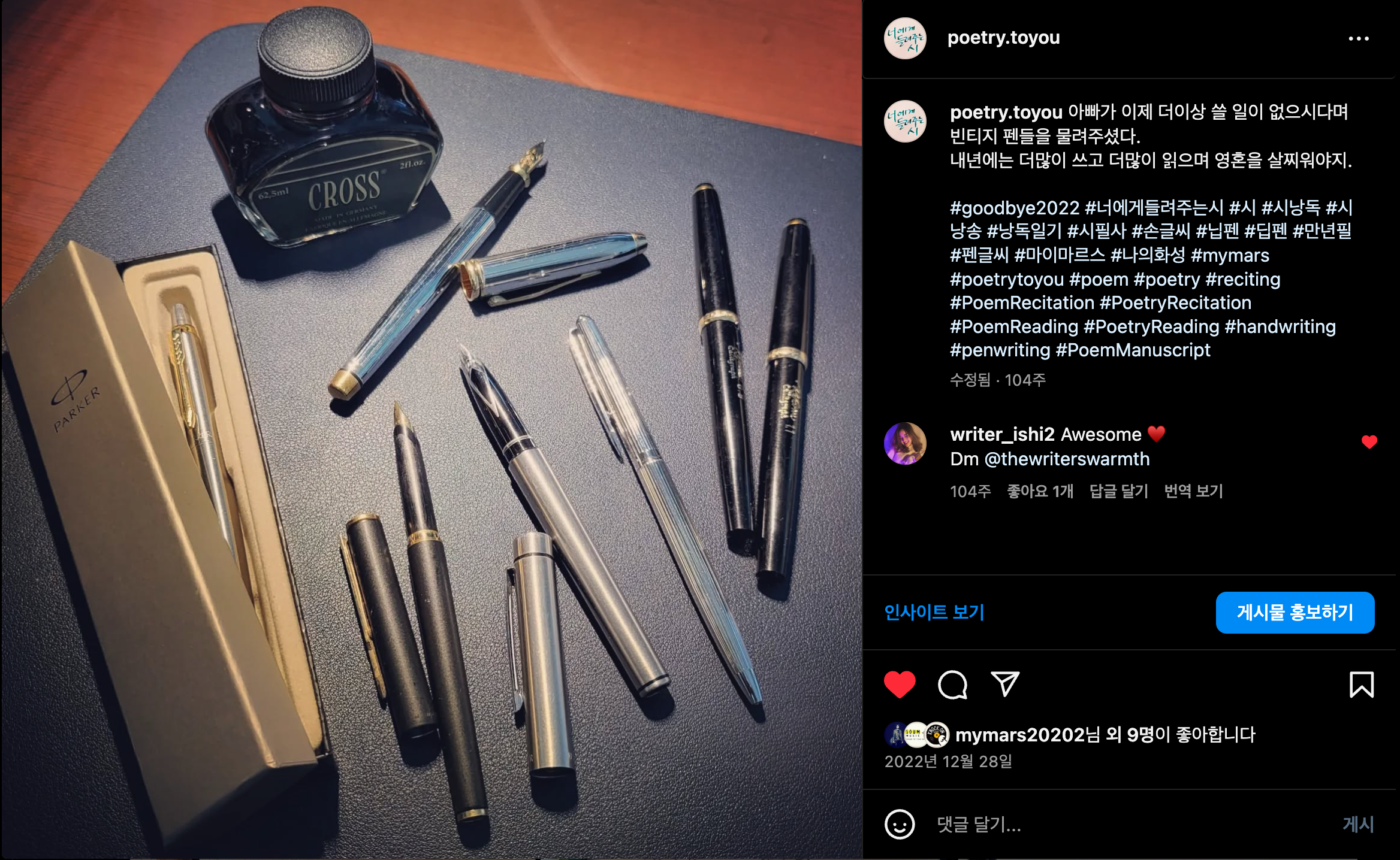 #goodbye2022 #너에게들려주는시 #시 #시낭독 #시낭송 #낭독일기 #시필사 #손글씨 #닙펜 #딥펜 #만년필 #펜글씨 #마이마르스 #나의화성 #mymars #poetrytoyou #poem #poetry #reciting #PoemRecitation #PoetryRecitation #PoemReading #PoetryReading #handwriting #penwriting #PoemManuscript