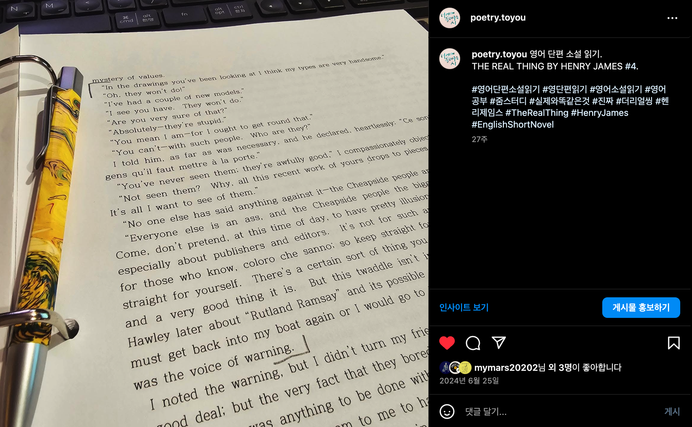 #영어단편소설읽기 #영단편읽기 #영어소설읽기 #영어공부 #줌스터디 #실제와똑같은것 #진짜 #더리얼씽 #헨리제임스 #TheRealThing #HenryJames #EnglishShortNovel