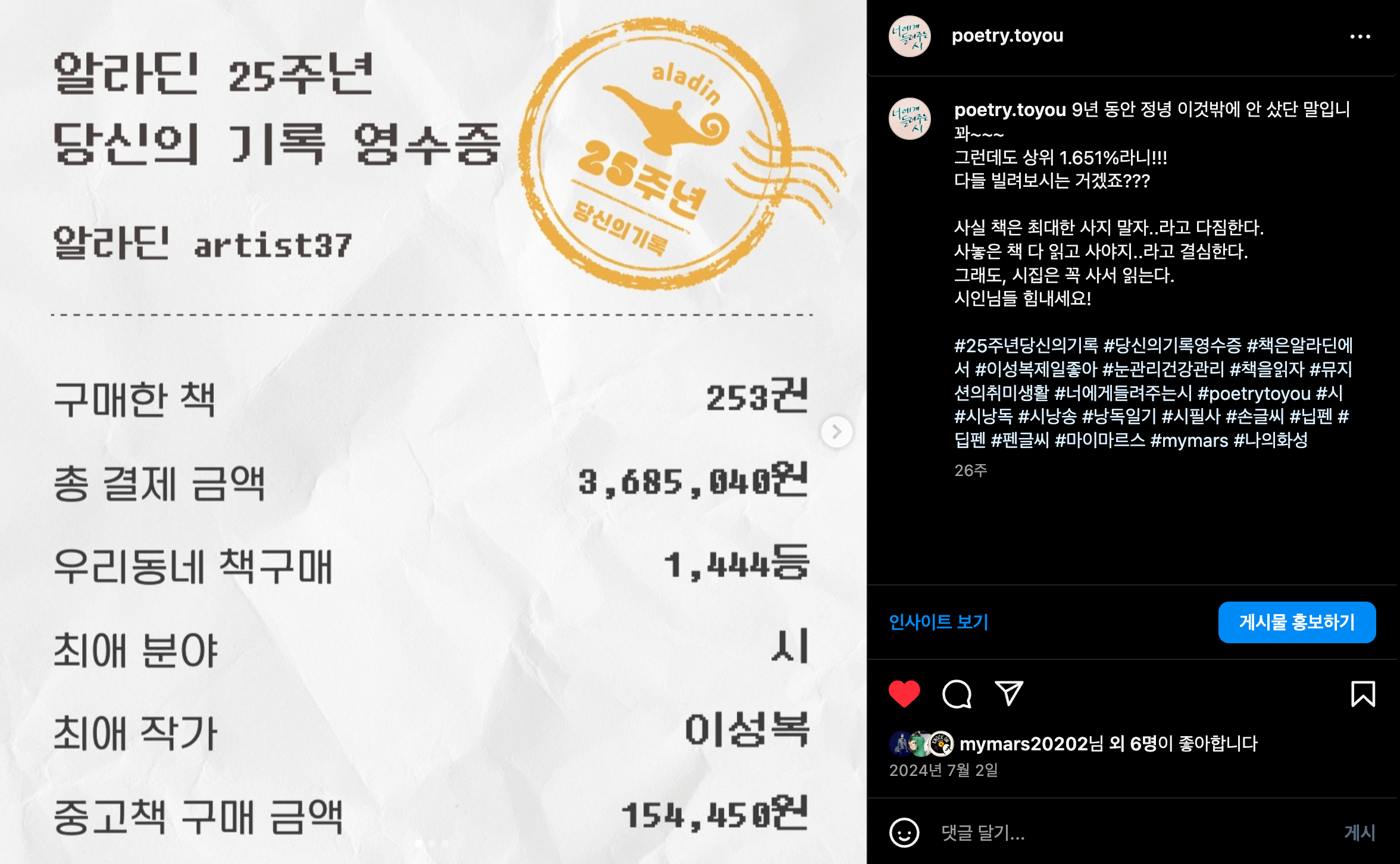 알라딘 25주년 당신의 기록
