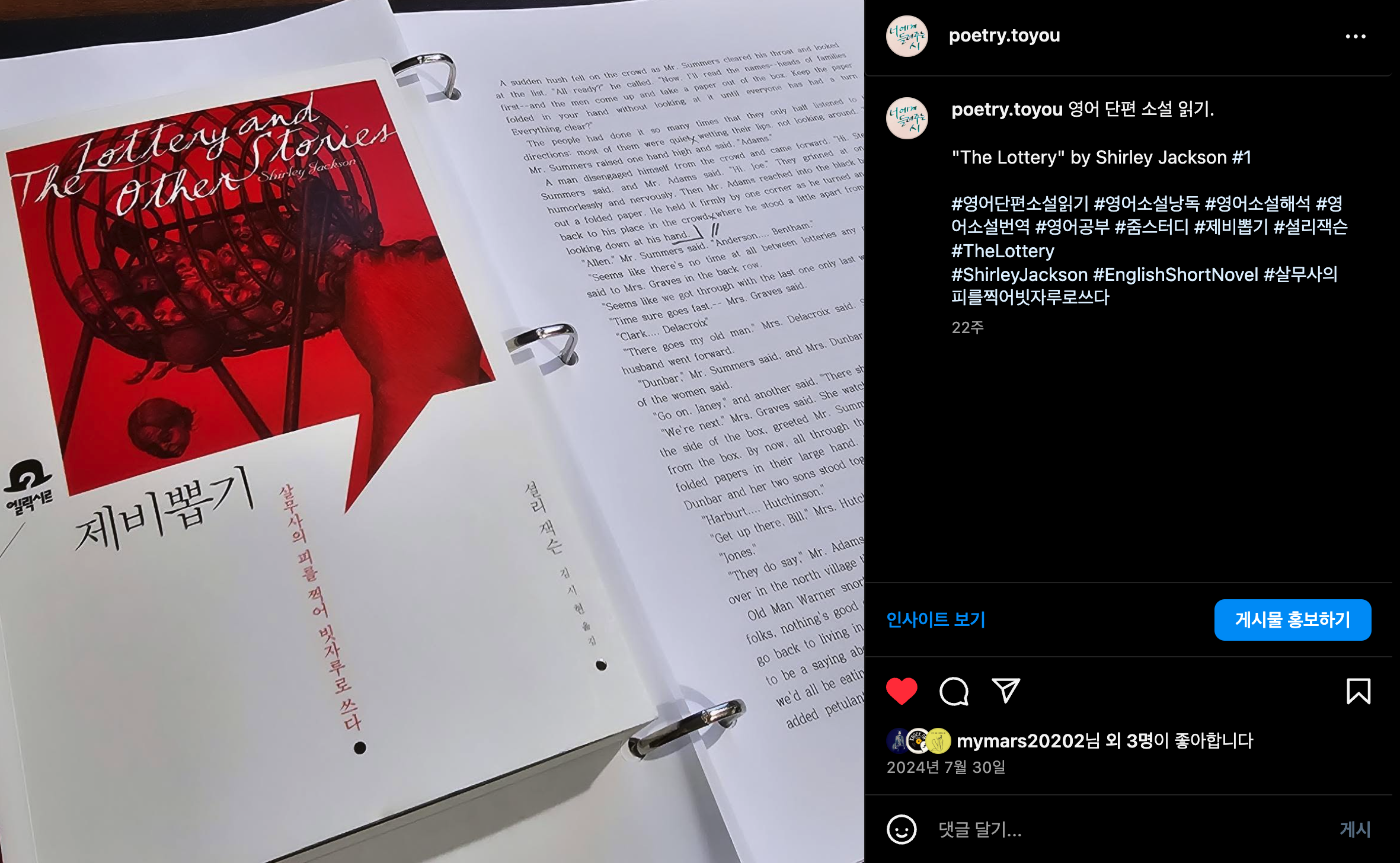 #영어단편소설읽기 #영어소설낭독 #영어소설해석 #영어소설번역 #영어공부 #줌스터디 #제비뽑기 #셜리잭슨 #TheLottery #ShirleyJackson #EnglishShortNovel #살무사의피를찍어빗자루로쓰다