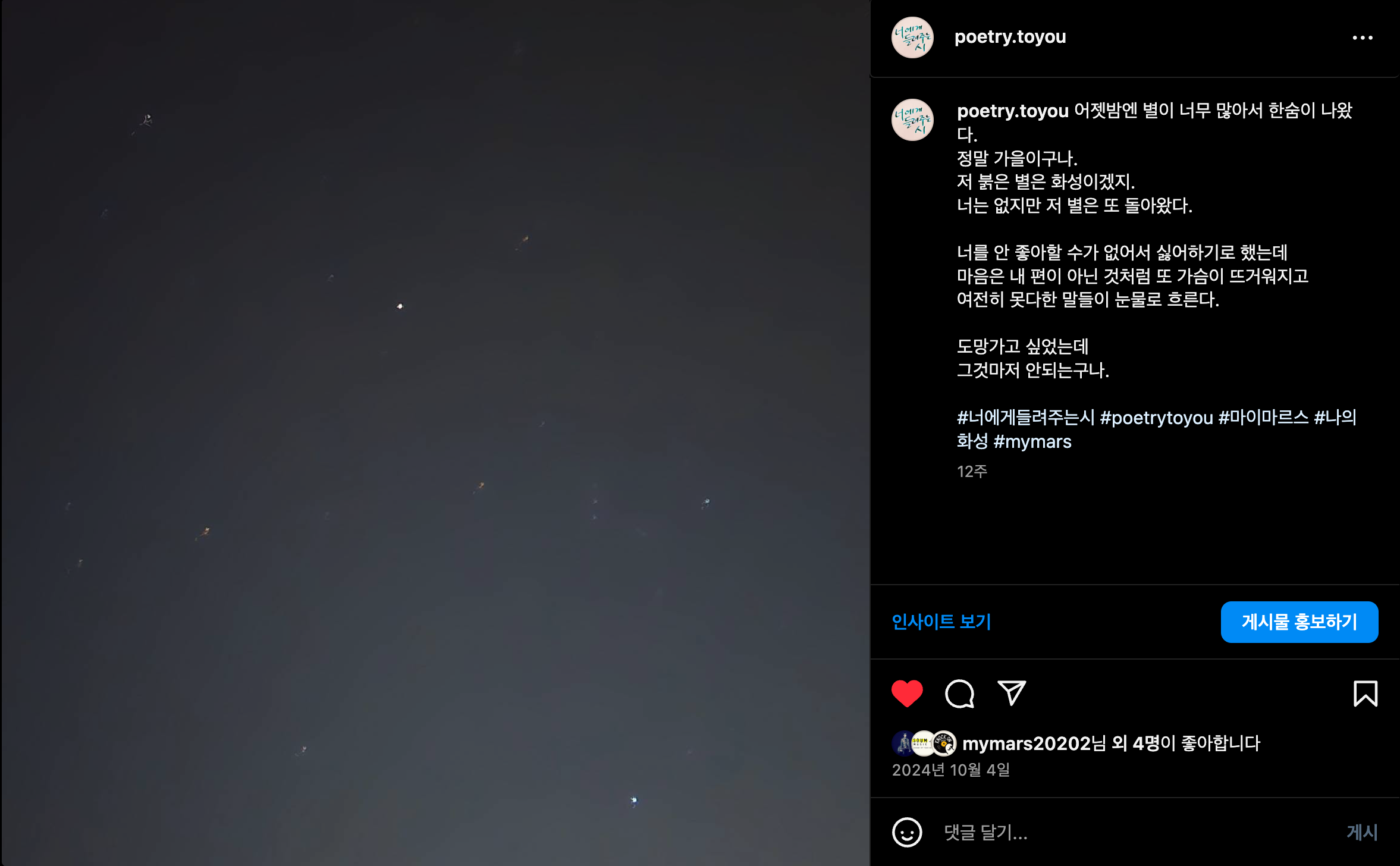 너는 없지만 저 별은 또 돌아왔다.