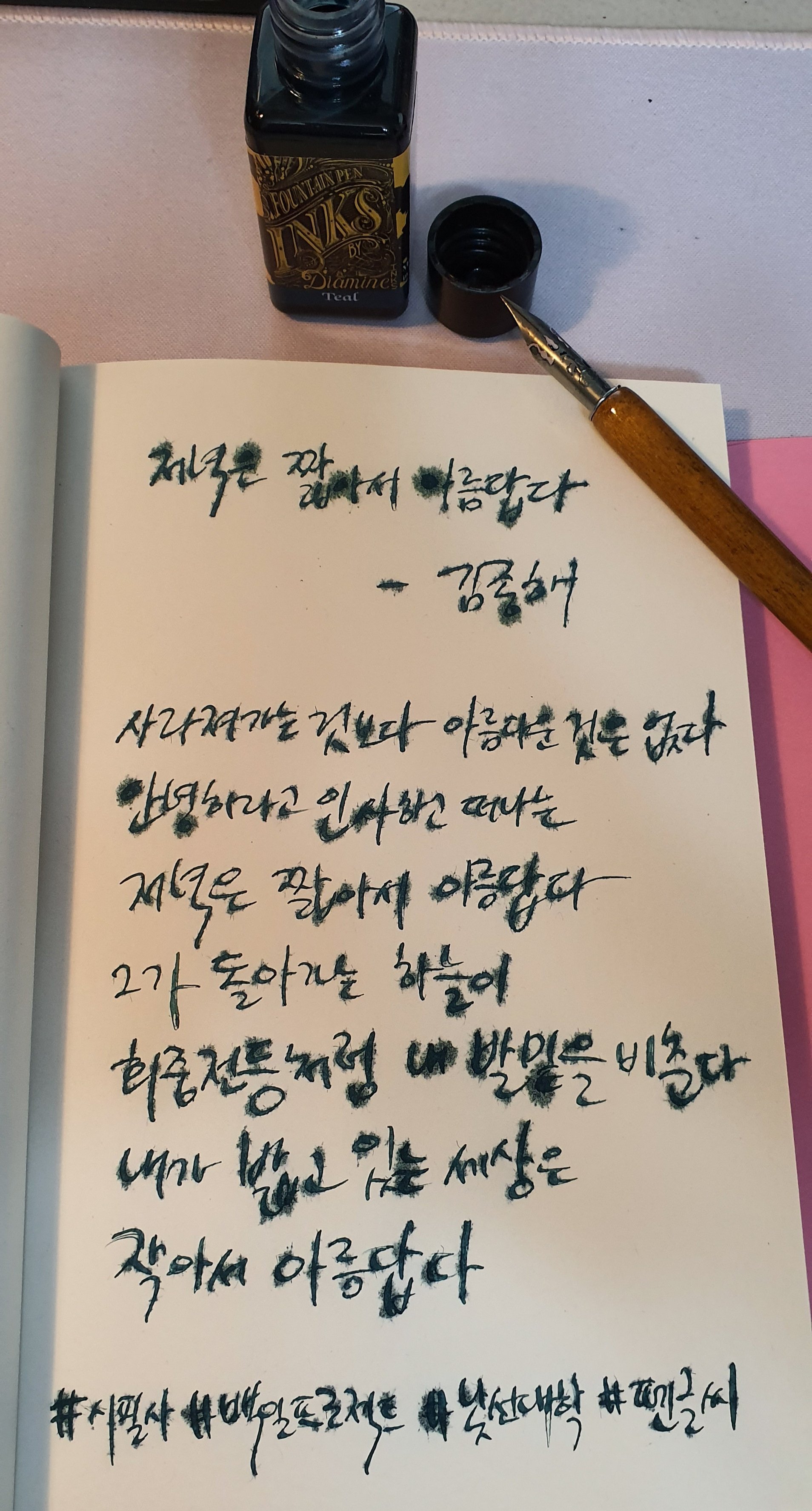 #김종해 #저녁은짧아서아름답다 #시필사 #펜글씨 #닙펜 #딥펜 #백일프로젝트 #카카오프로젝트100 #낯선대학