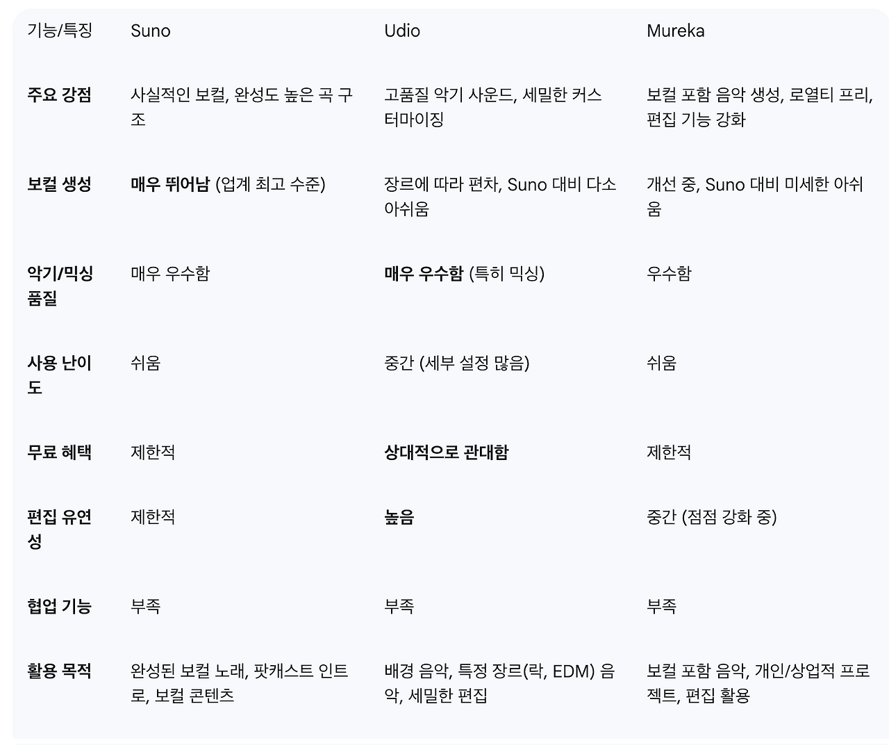 솔직히 아직 완성도 면에서 아쉬운 부분이 많이 있었지만, 기존 AI 음악 툴과 차별화된 시도들은 분명히 인상적이었습니다.