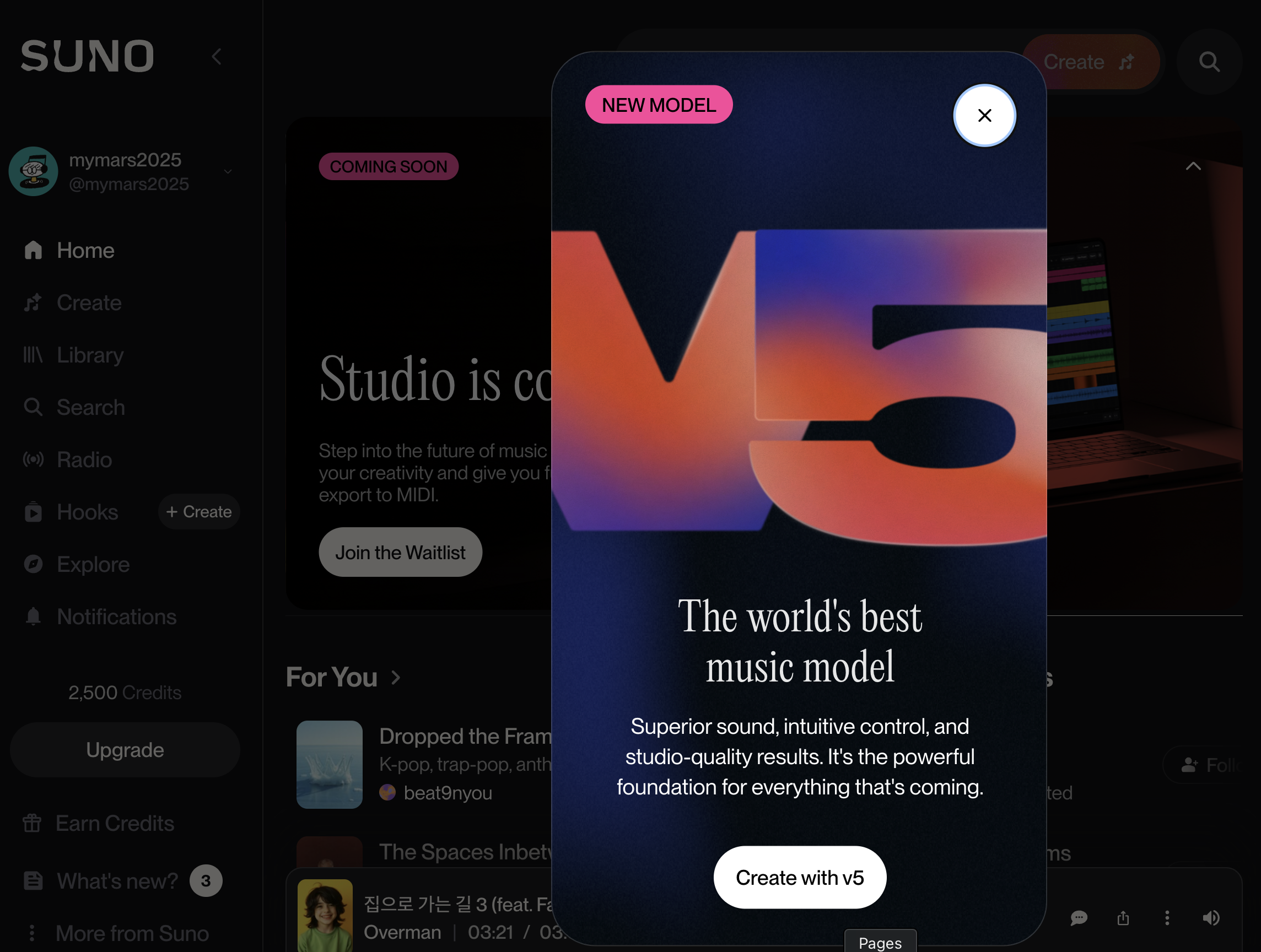 [AI 음악] Suno의 새로운 모델 v5 출시