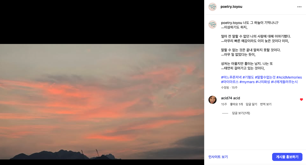 #어느푸른저녁 #기형도 #말할수없는것 #AcidMemories #마이마르스 #mymars #나의화성 #너에게들려주는시