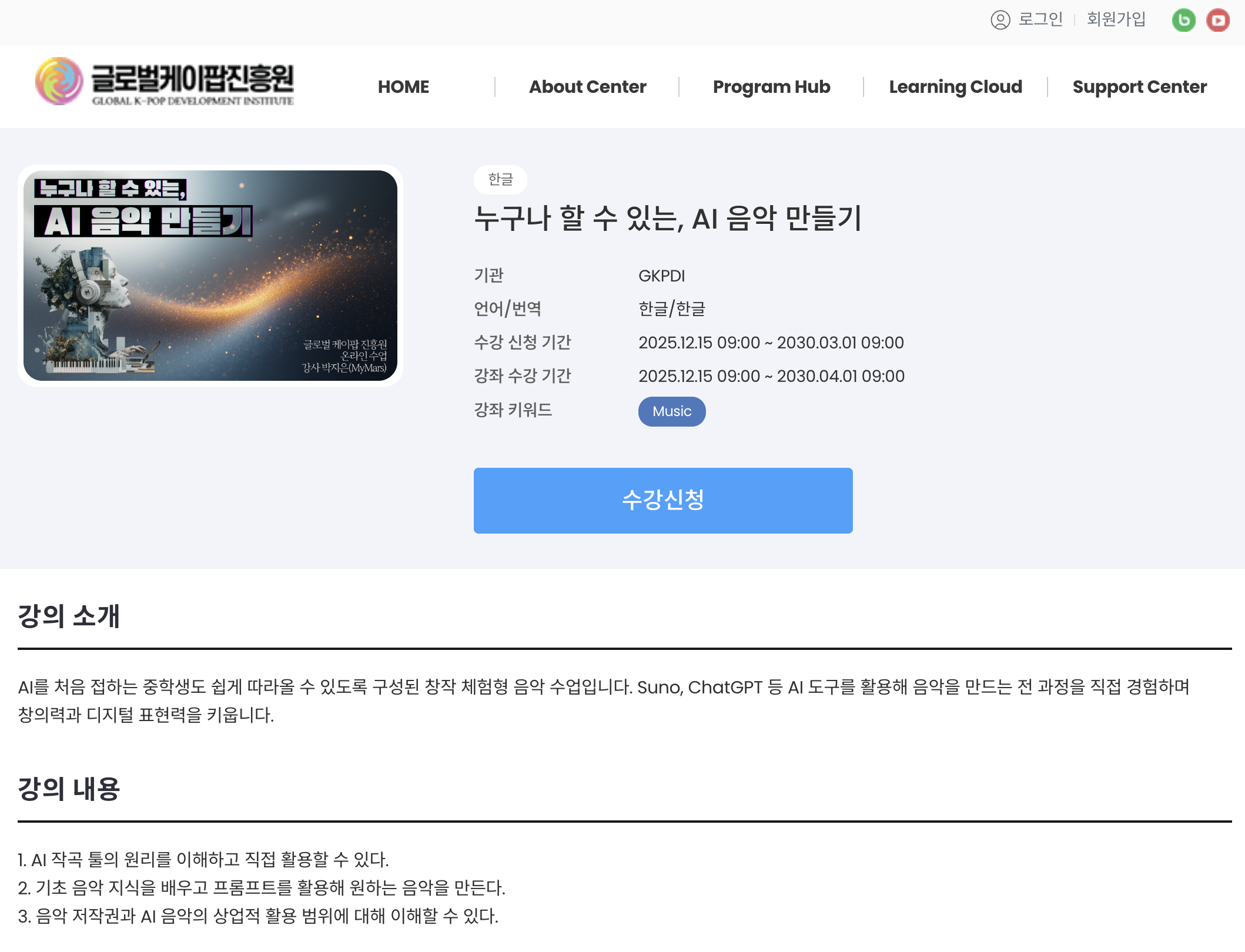 청소년을 위한 AI 음악 교육, 온라인 과정 제작 @글로벌케이팝진흥원