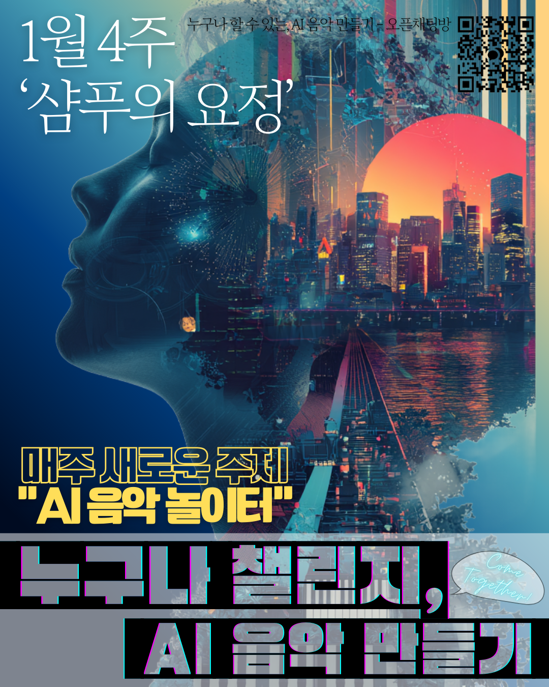 1월 4주 누구나 챌린지는 한국 시티팝(City Pop)의 정수, 빛과 소금의 '샴푸의 요정' 스타일을 바탕으로 나만의 몽환적인 시티팝을 만들어보는 챌린지입니다.