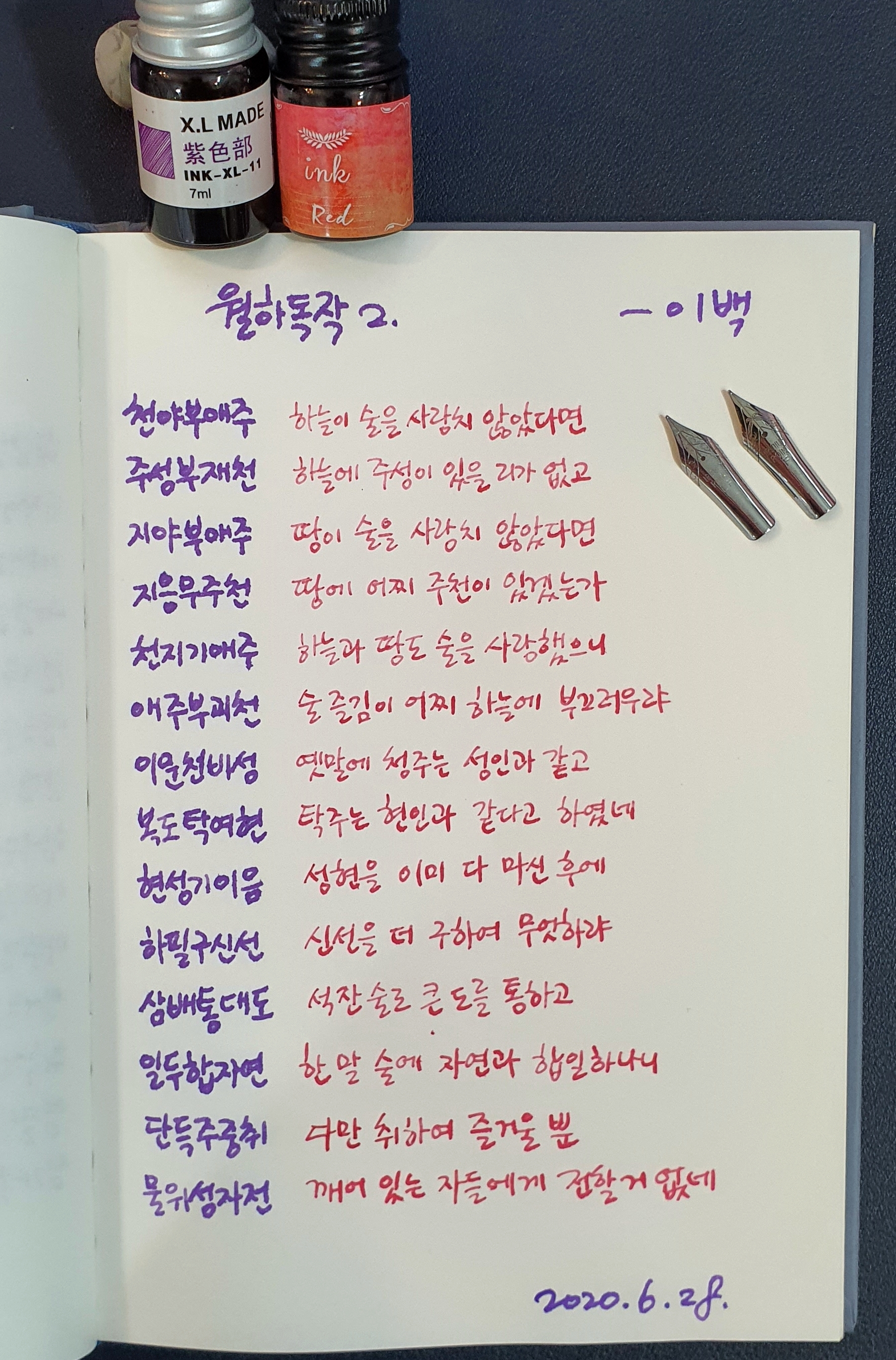 #월하독작 #이백 #시필사 #펜글씨 #손글씨 #닙펜 #딥펜 #골드펄잉크 #매일프로젝트 #이른아침을먹던여름 #thatsummerwithyou