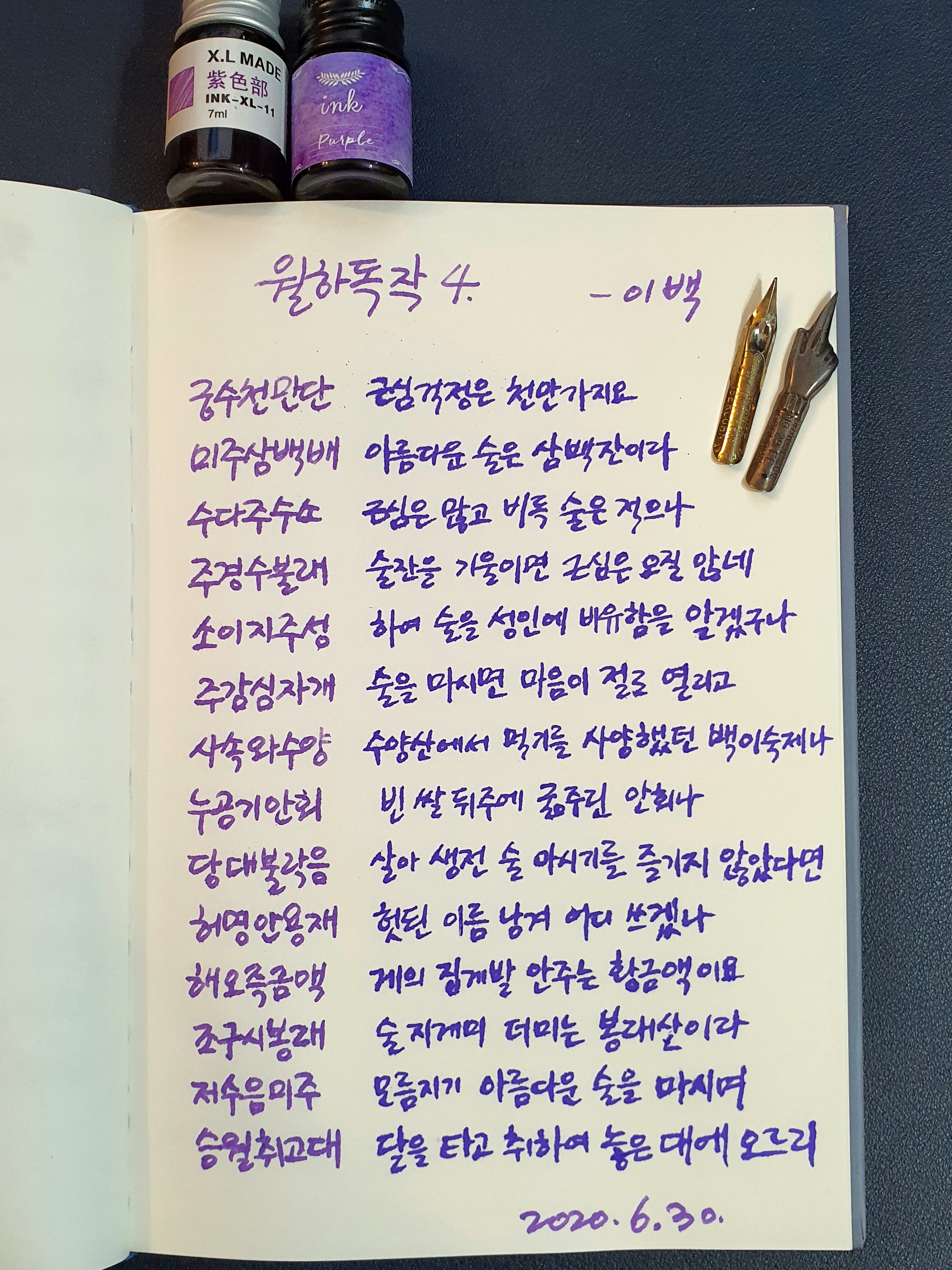 #월하독작 #이백 #시필사 #펜글씨 #손글씨 #닙펜 #딥펜 #골드펄잉크 #매일프로젝트 #이른아침을먹던여름 #thatsummerwithyou