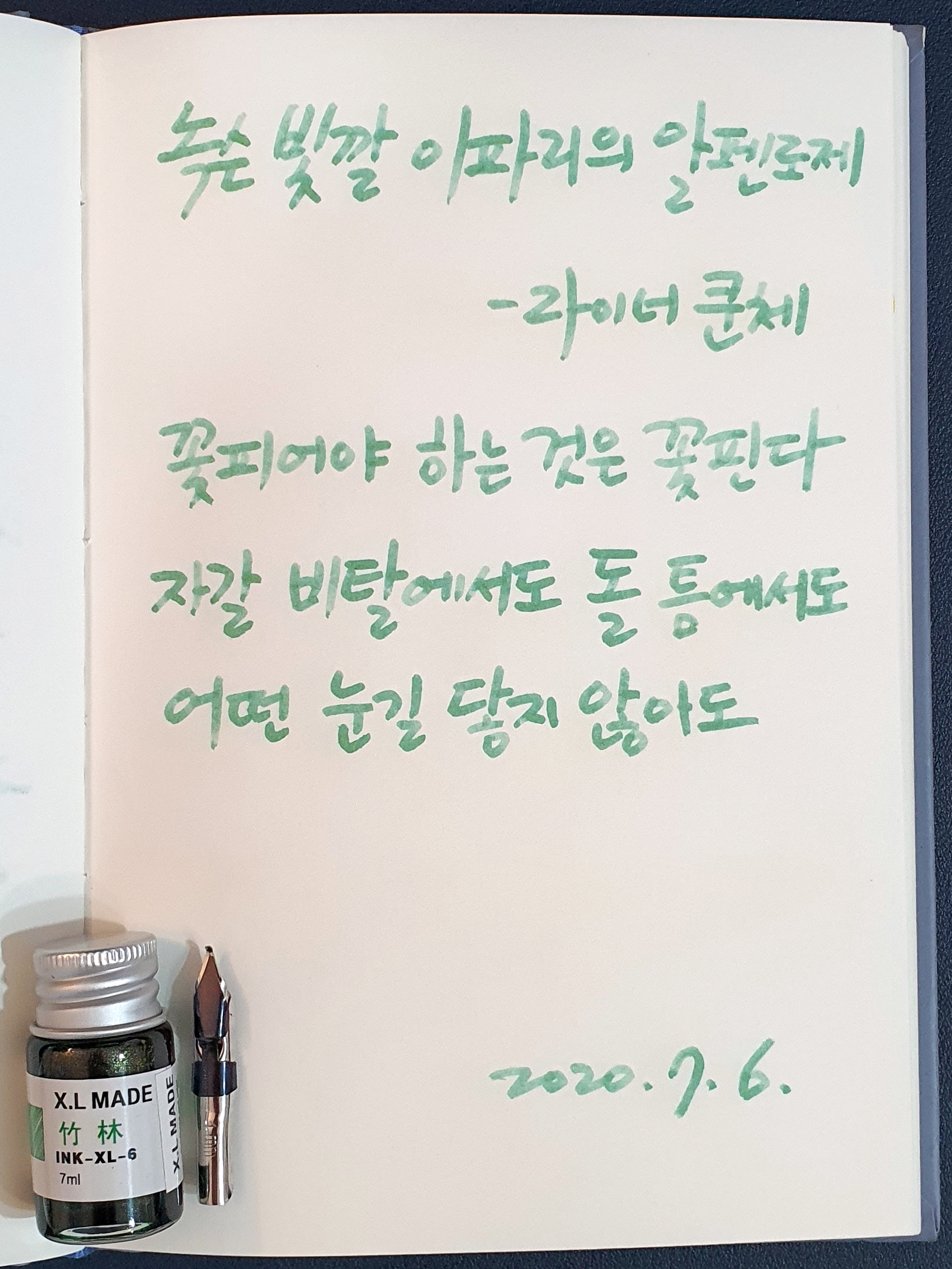 #녹슨빛깔이파리의알펜로제 #라이너쿤체 #눈속장미 #시필사 #펜글씨 #손글씨 #닙펜 #딥펜 #매일프로젝트 #이른아침을먹던여름 #thatsummerwithyou