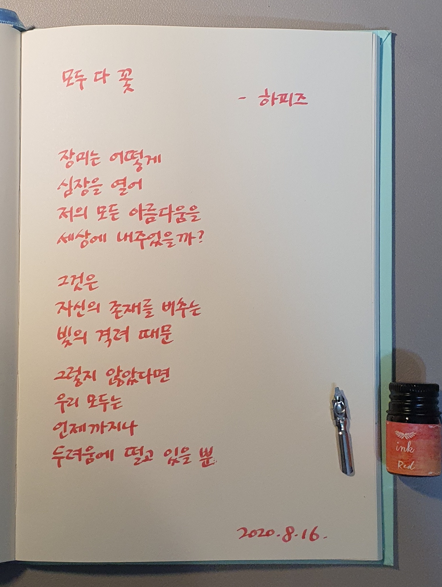 #모두다꽃 #하피즈 #시필사 #펜글씨 #손글씨 #닙펜 #딥펜 #매일프로젝트 #이른아침을먹던여름 #thatsummerwithyou