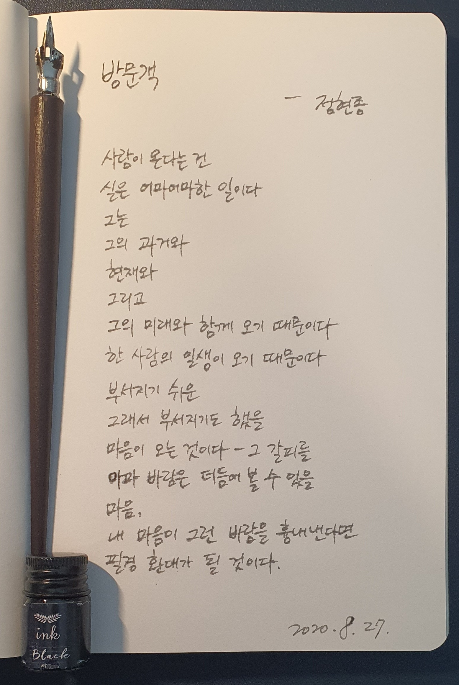 #방문객 #정현종 #시필사 #펜글씨 #손글씨 #닙펜 #딥펜 #매일프로젝트 #이른아침을먹던여름 #thatsummerwithyou