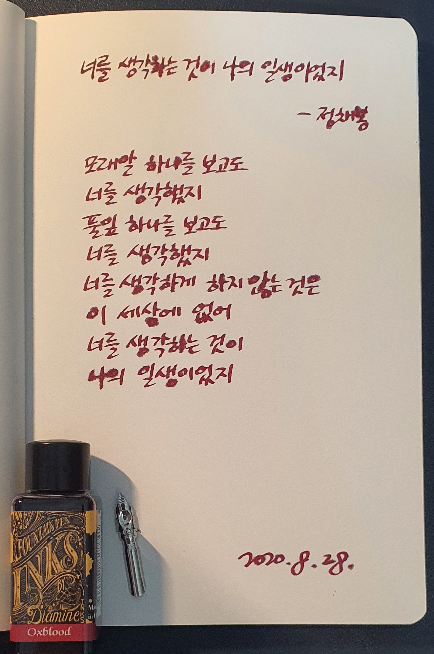 #너를생각하는것이나의일생이었지 #정채봉 #시필사 #펜글씨 #손글씨 #닙펜 #딥펜 #매일프로젝트 #이른아침을먹던여름 #thatsummerwithyou