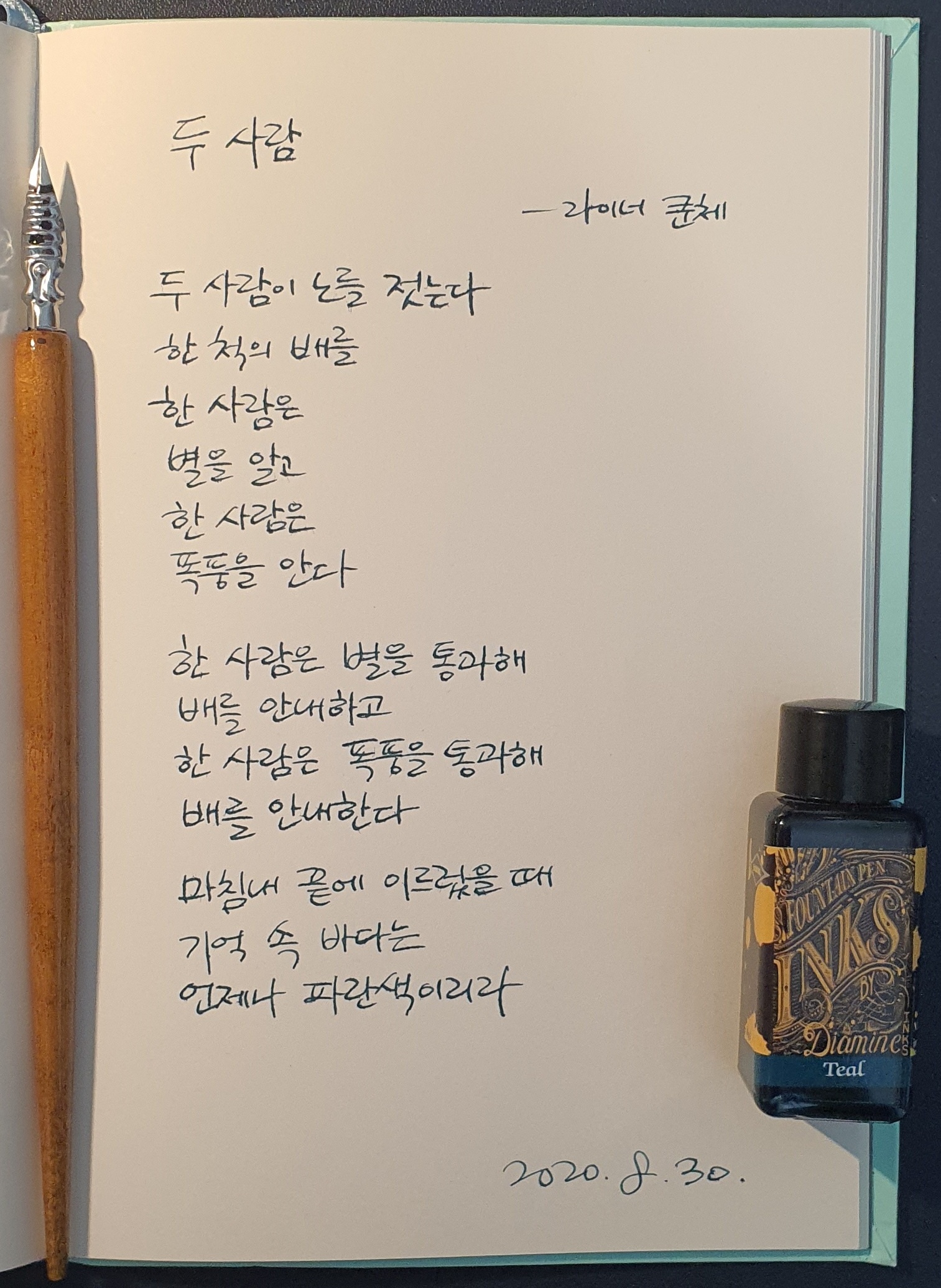 #두사람 #라이너쿤체 #시필사 #펜글씨 #손글씨 #닙펜 #딥펜 #매일프로젝트 #이른아침을먹던여름 #thatsummerwithyou
