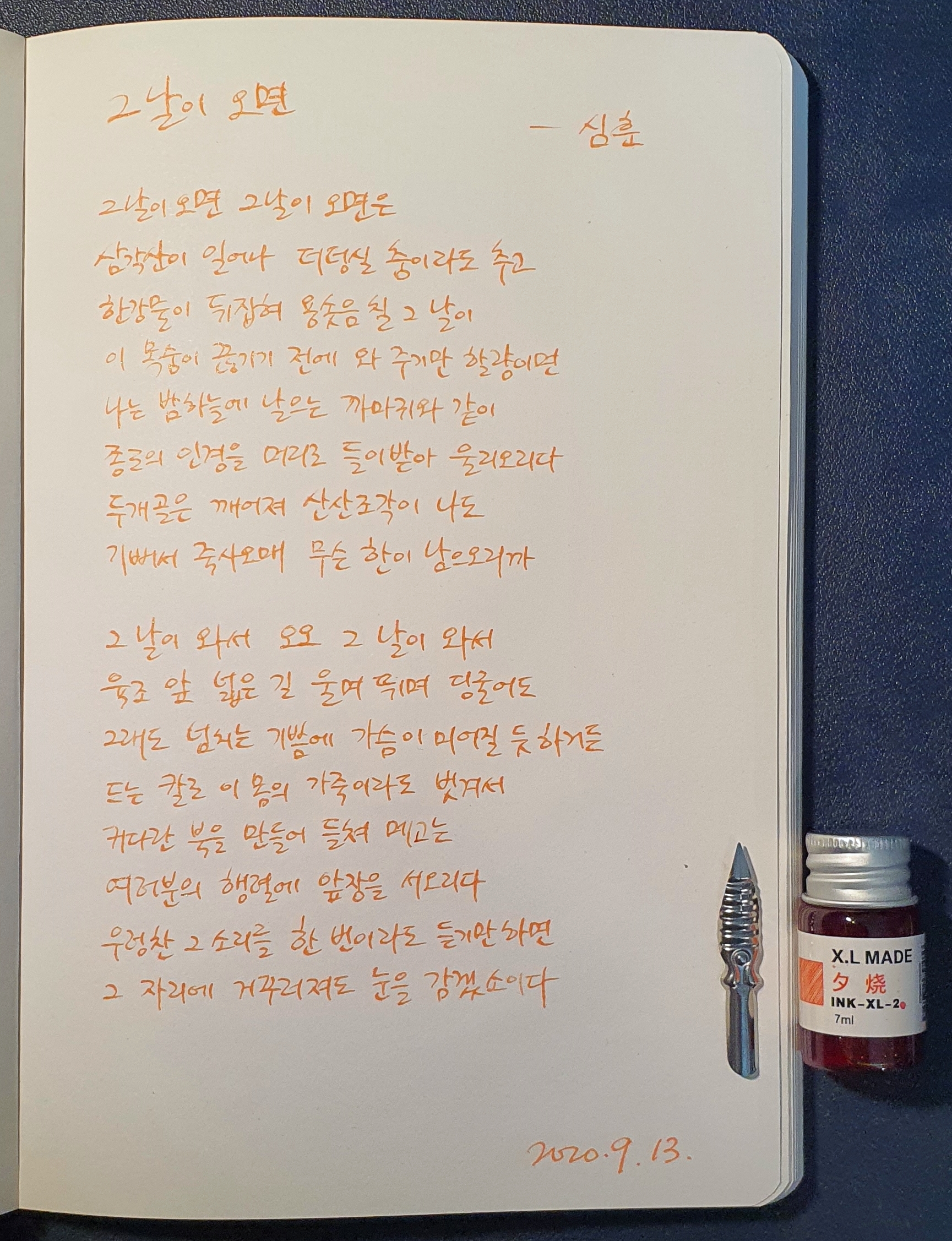 #그날이오면 #심훈 #시필사 #펜글씨 #손글씨 #닙펜 #딥펜 #매일프로젝트 #이른아침을먹던여름 #thatsummerwithyou #카카오프로젝트100 #낯선대학