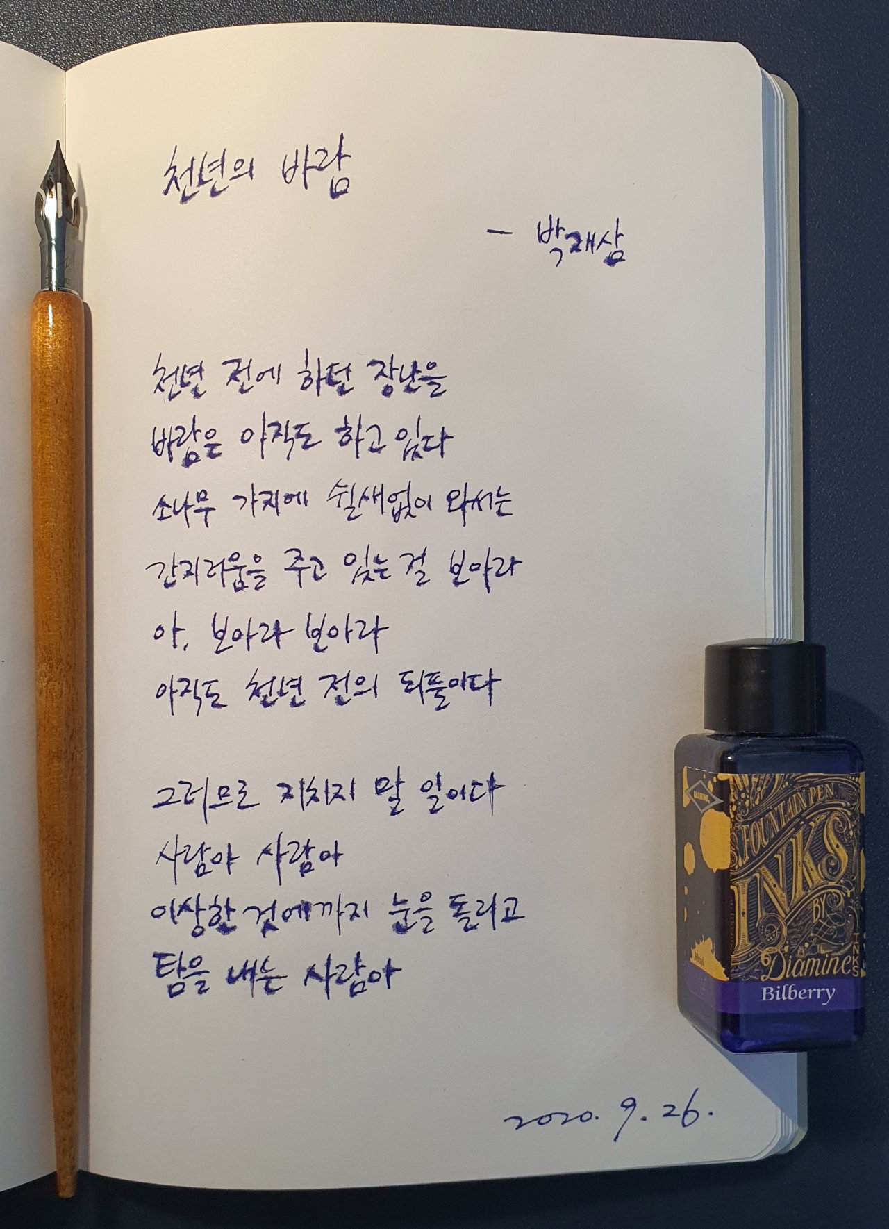 #천년의바람 #박재삼 #시필사 #닙펜 #딥펜 #펜글씨 #손글씨 #매일프로젝트 #이른아침을먹던여름 #thatsummerwithyou #카카오프로젝트100 #낯선대학