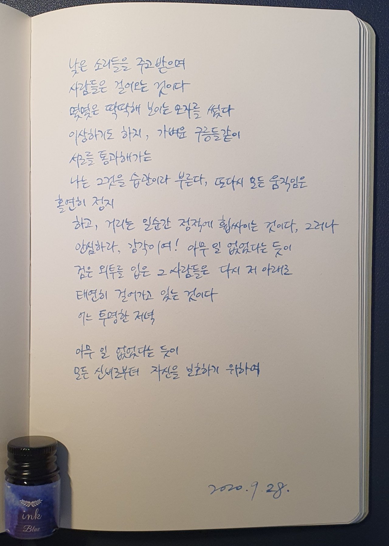 #어느푸른저녁 #기형도 #시필사 #닙펜 #딥펜 #펜글씨 #손글씨 #매일프로젝트 #이른아침을먹던여름 #thatsummerwithyou #카카오프로젝트100 #낯선대학