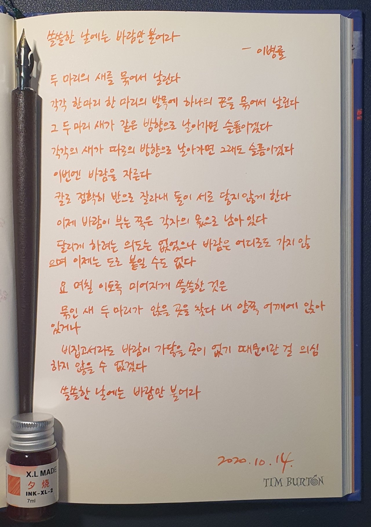 #쓸쓸한날에는바람만불어라 #이병률 #닙펜 #딥펜 #펜글씨 #손글씨 #매일프로젝트 #이른아침을먹던여름 #thatsummerwithyou #카카오프로젝트100 #낯선대학 #시처럼시필사