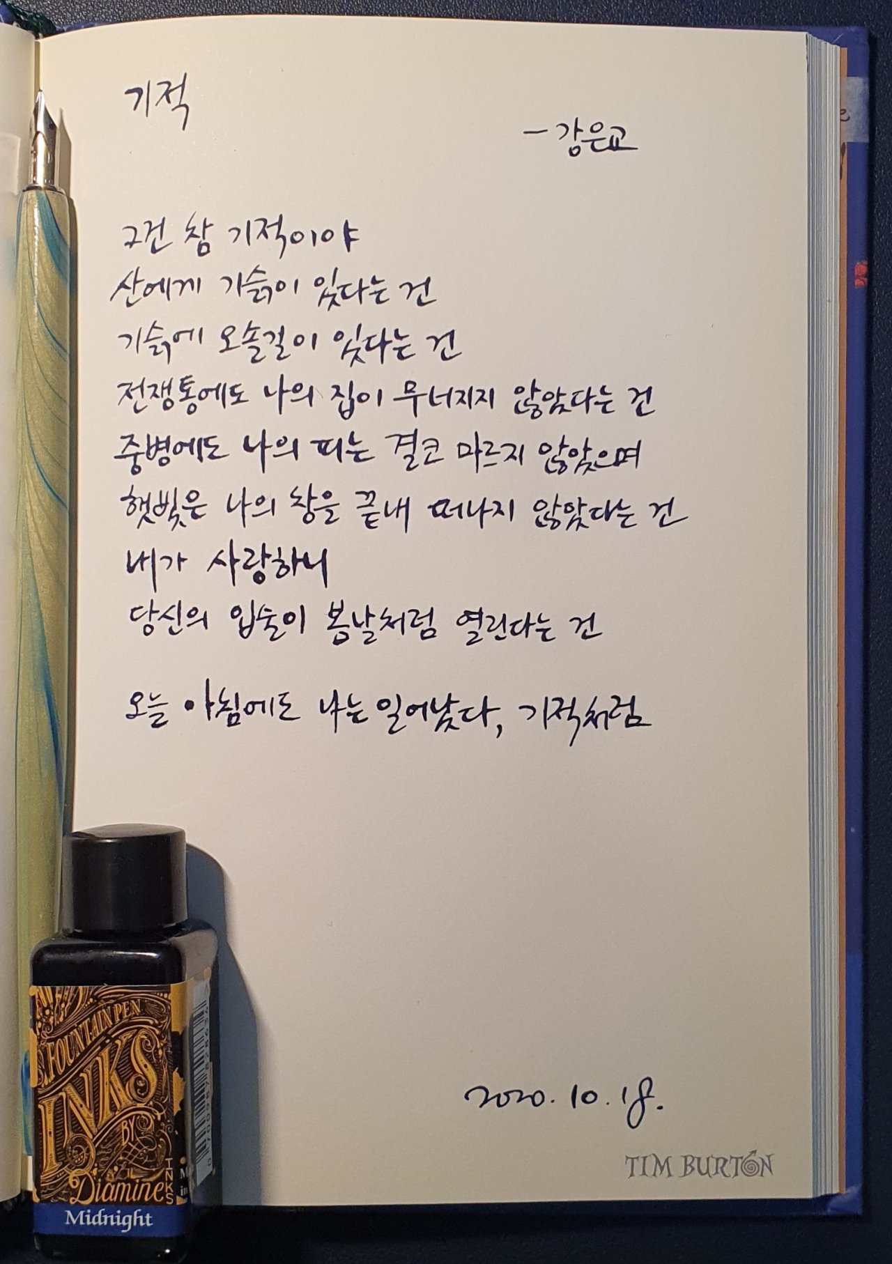 #기적 #강은교 #닙펜 #딥펜 #펜글씨 #손글씨 #매일프로젝트 #이른아침을먹던여름 #thatsummerwithyou #카카오프로젝트100 #낯선대학 #시처럼시필사