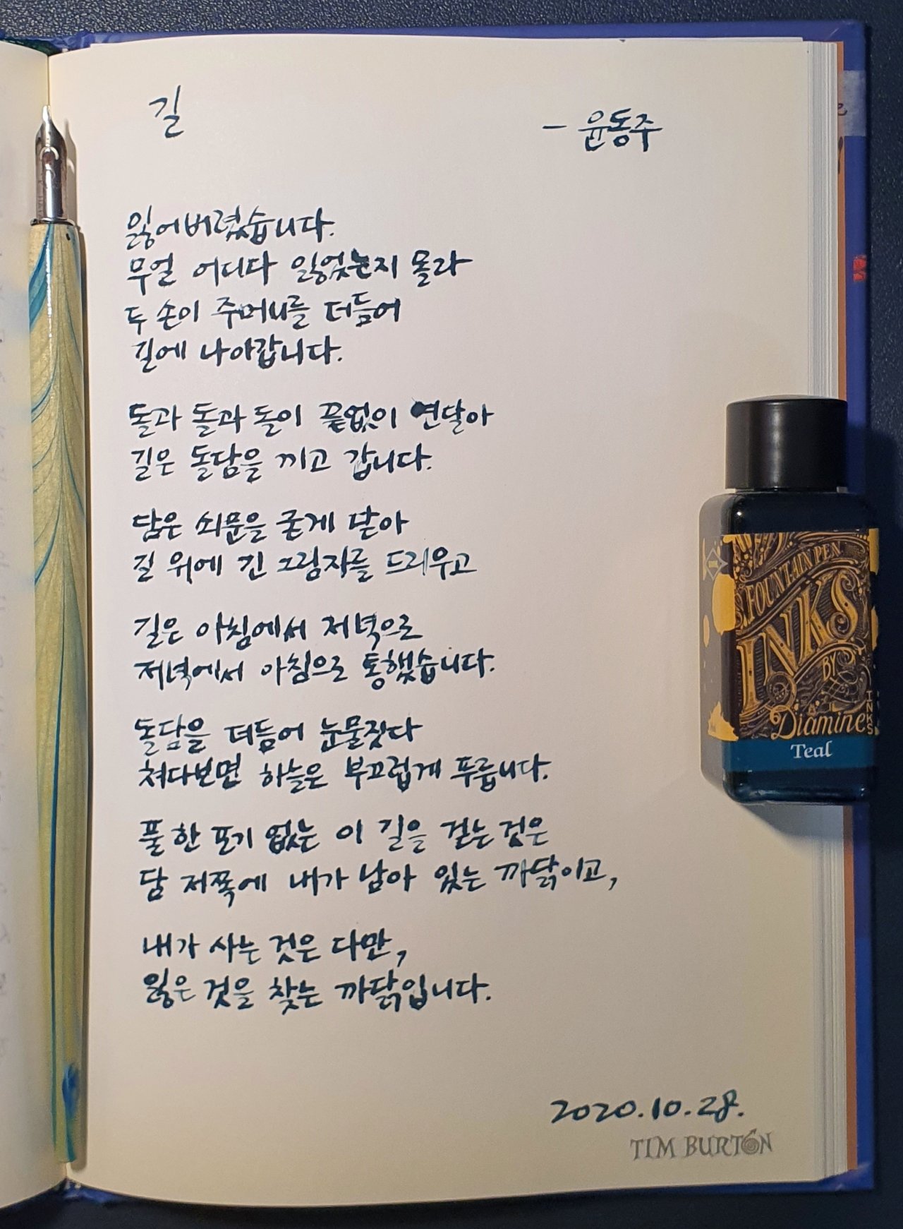 #길 #윤동주 #닙펜 #딥펜 #펜글씨 #손글씨 #매일프로젝트 #이른아침을먹던여름 #thatsummerwithyou #카카오프로젝트100 #낯선대학 #시처럼시필사
