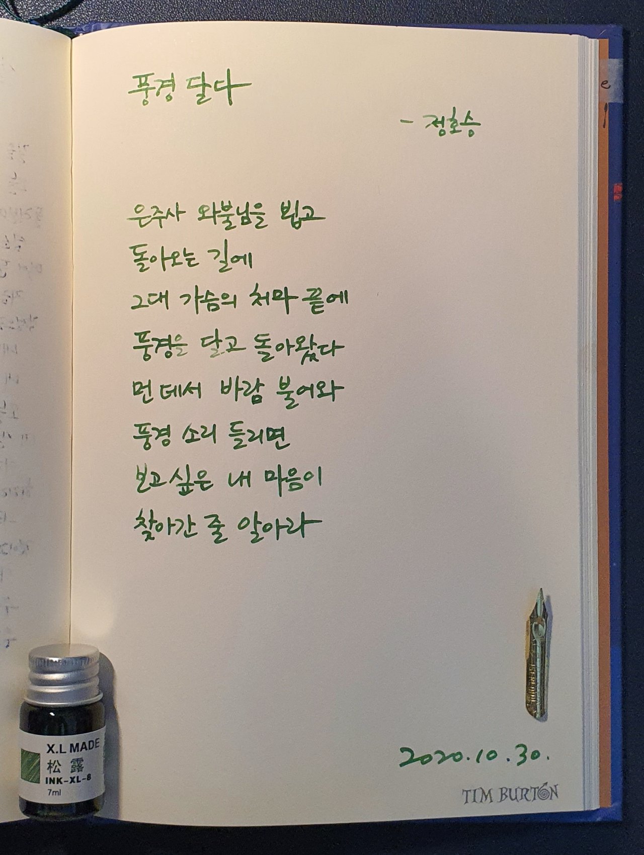 #풍경달다 #정호승 #닙펜 #딥펜 #펜글씨 #손글씨 #매일프로젝트 #이른아침을먹던여름 #thatsummerwithyou #카카오프로젝트100 #낯선대학 #시처럼시필사