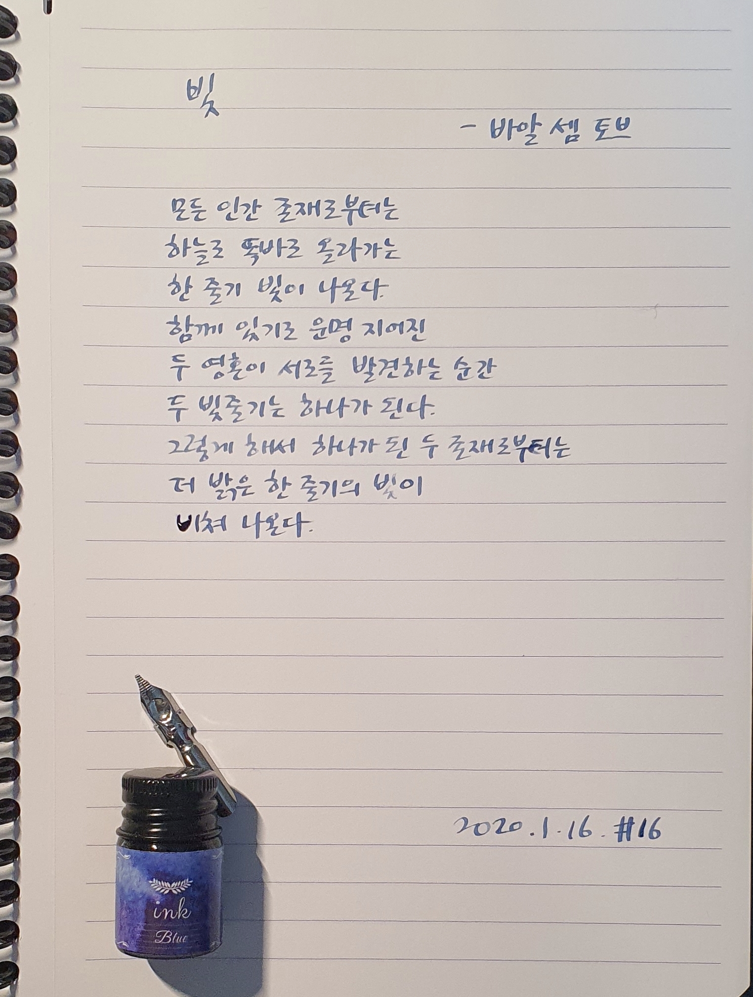 #빛 #바알셈토브 #시필사 #닙펜 #딥펜 #펜글씨 #손글씨 #매일시쓰기 #1일1시 #하루에시한편 #이른아침을먹던여름 #thatsummerwithyou