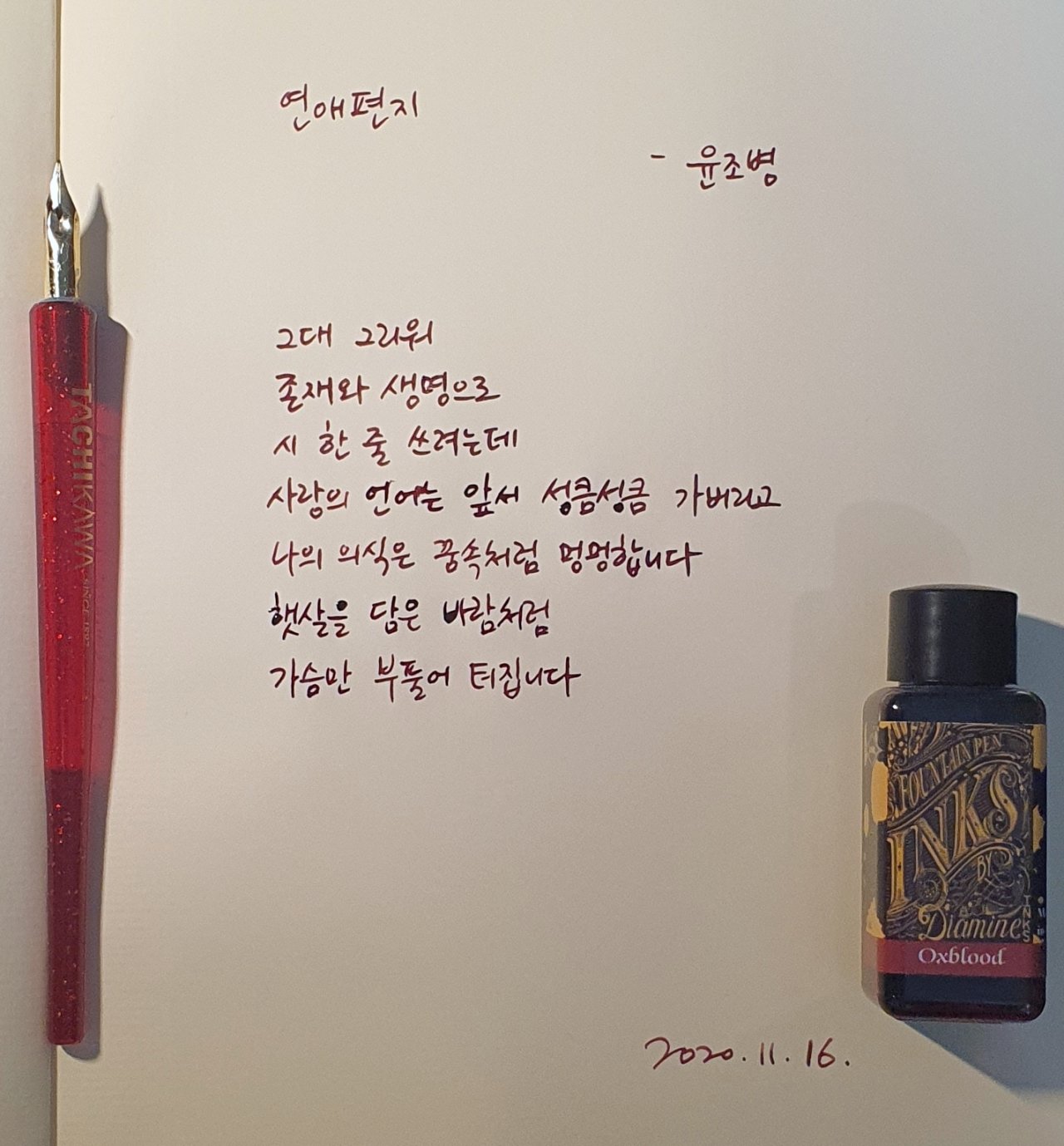 #연애편지 #윤조병 #닙펜 #딥펜 #펜글씨 #손글씨 #매일프로젝트 #이른아침을먹던여름 #thatsummerwithyou #카카오프로젝트100 #낯선대학 #시처럼시필사