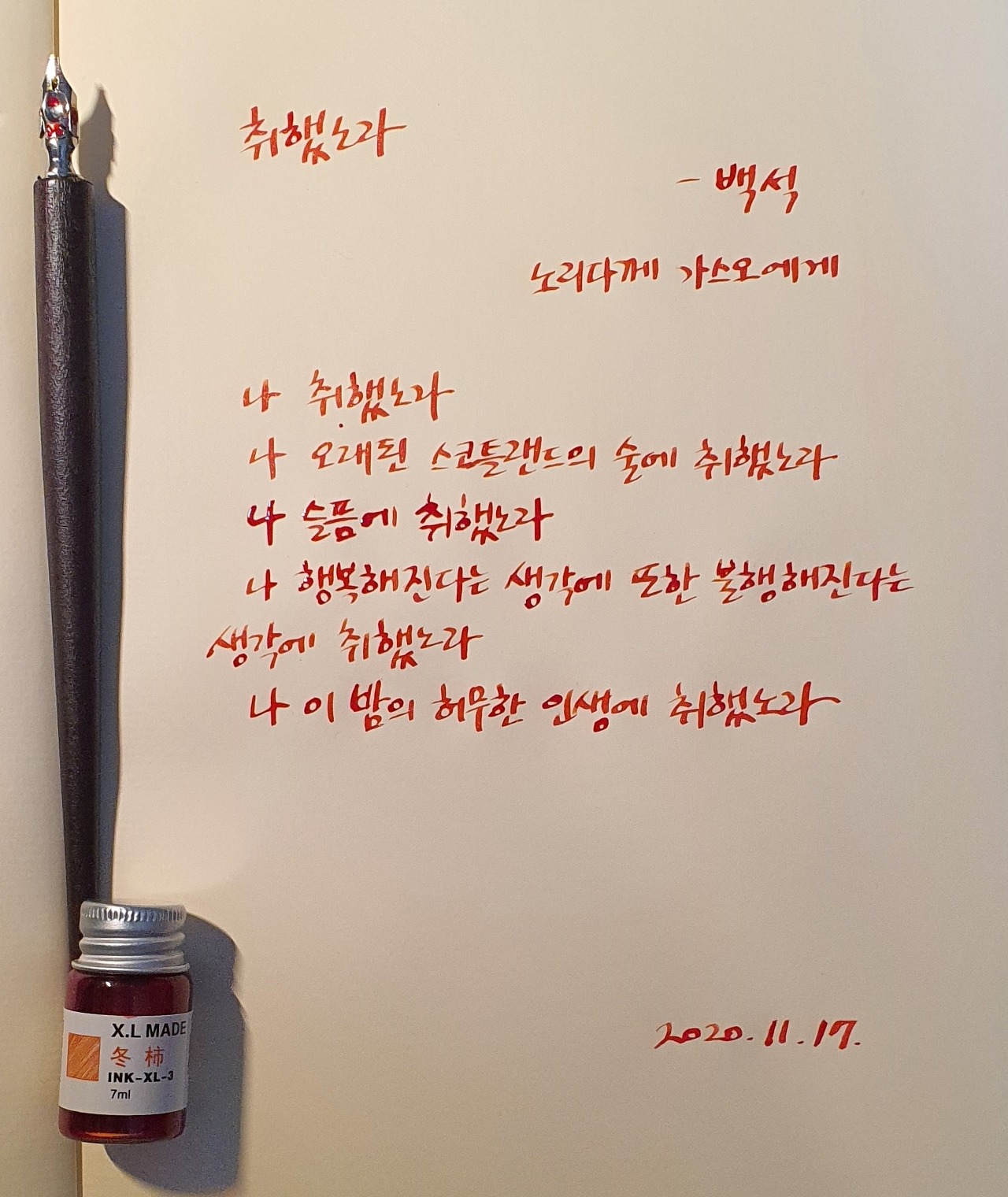 #취했노라 #백석 #닙펜 #딥펜 #펜글씨 #손글씨 #매일프로젝트 #이른아침을먹던여름 #thatsummerwithyou #카카오프로젝트100 #낯선대학 #시처럼시필사