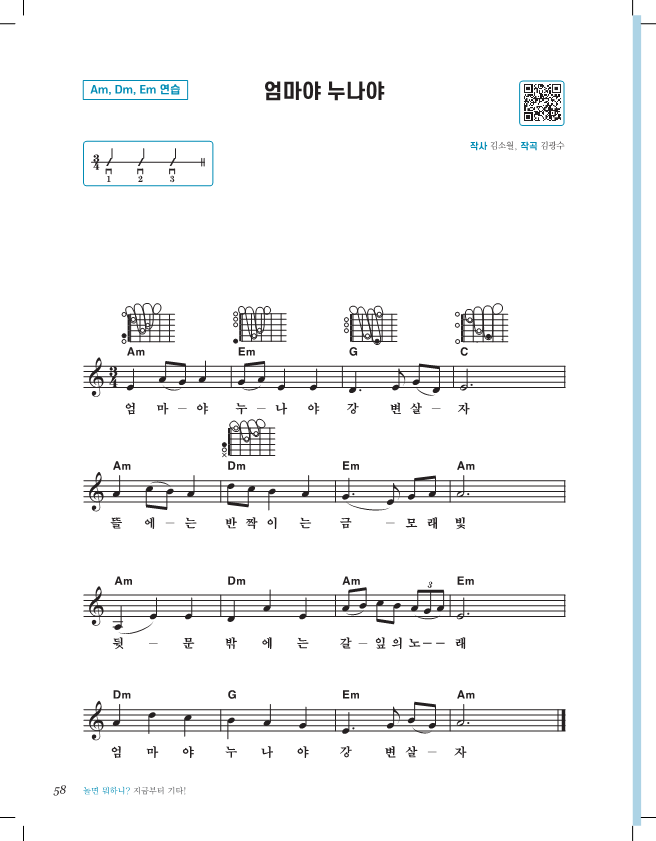 Am - Dm - Em 코드 연습곡인 '엄마야 누나야'입니다.