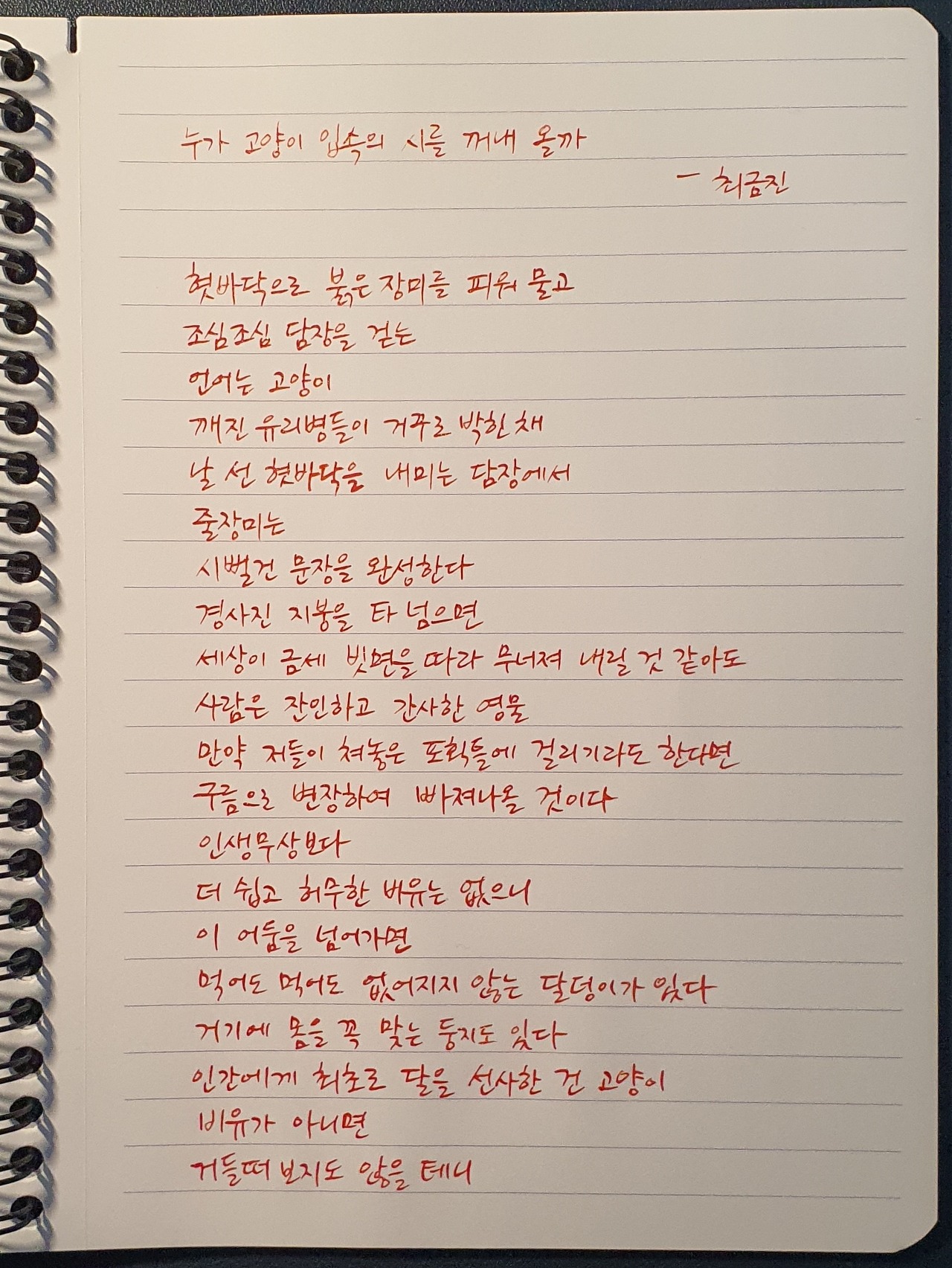 #누가고양이입속의시를꺼내올까 #최금진 #시필사 #닙펜 #딥펜 #펜글씨 #손글씨 #매일시쓰기 #1일1시 #하루에시한편 #이른아침을먹던여름 #thatsummerwithyou