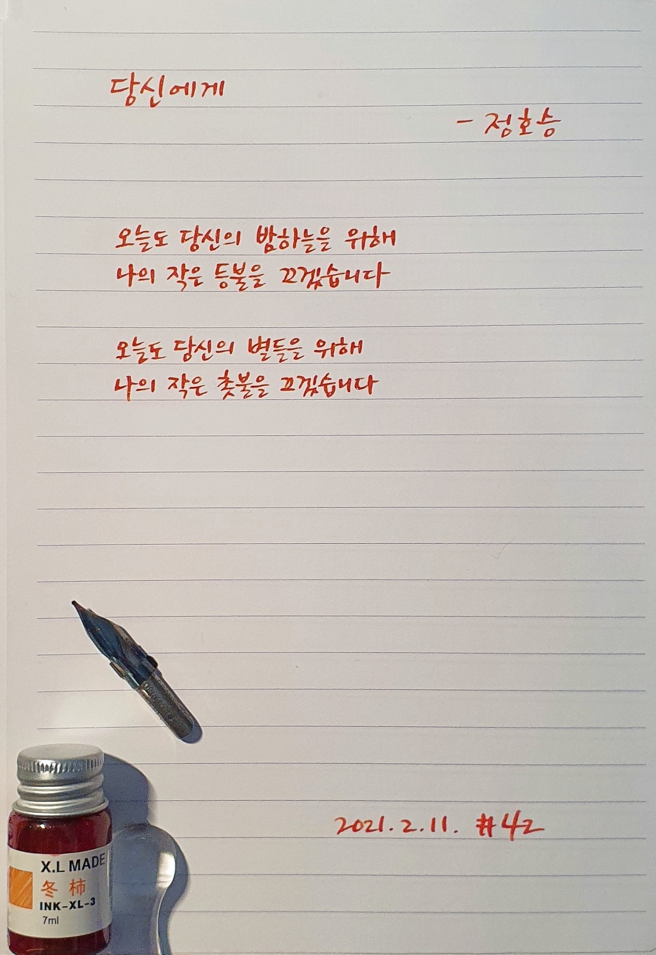 #당신에게 #정호승 #시필사 #닙펜 #딥펜 #펜글씨 #손글씨 #매일시쓰기 #1일1시 #하루에시한편 #이른아침을먹던여름 #thatsummerwithyou
