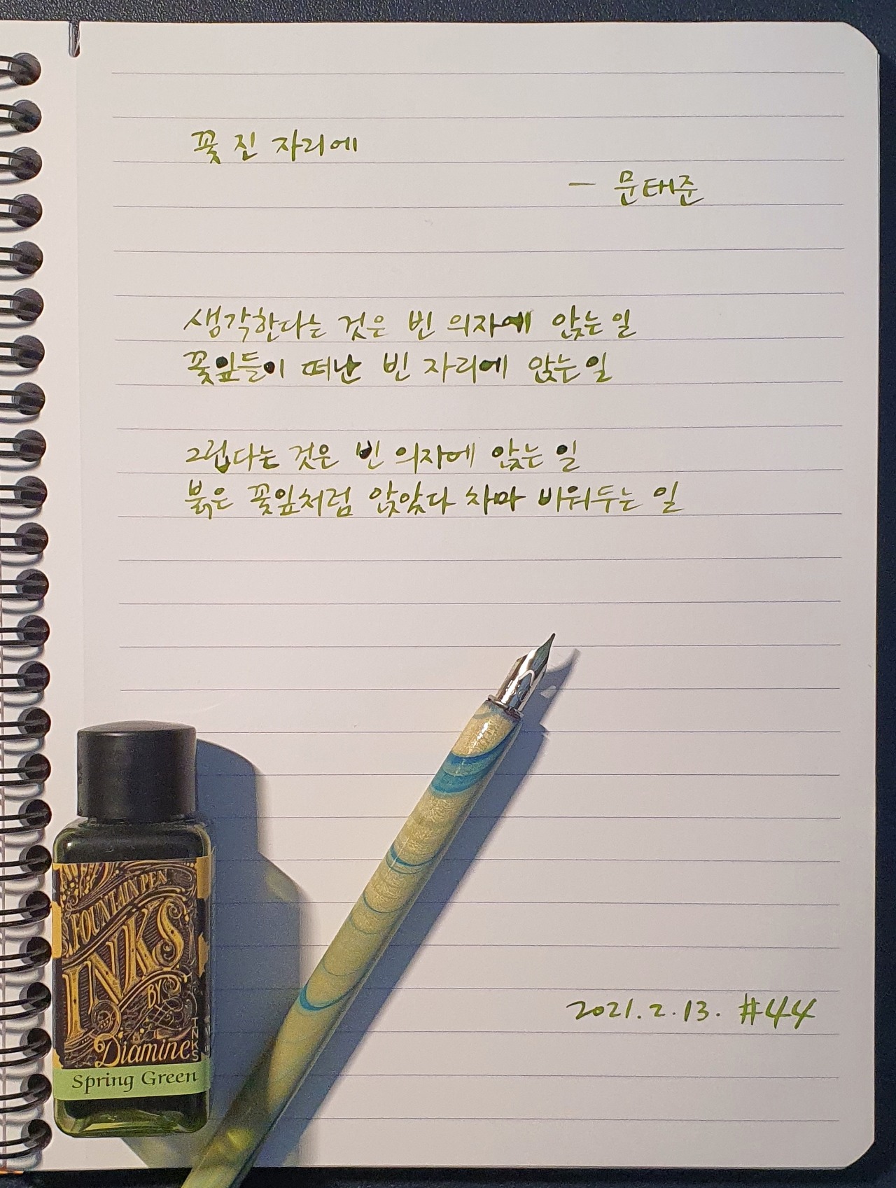 #꽃진자리에 #문태준 #시필사 #닙펜 #딥펜 #펜글씨 #손글씨 #매일시쓰기 #1일1시 #하루에시한편 #이른아침을먹던여름 #thatsummerwithyou