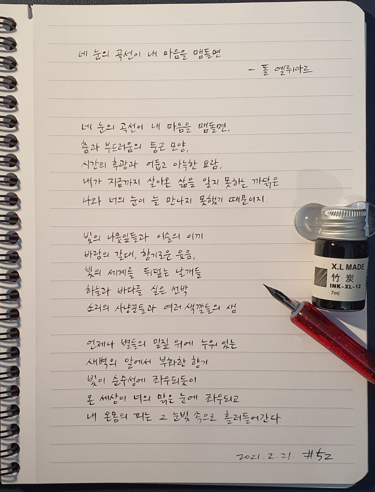 #네눈의곡선이내마음을맴돌면 #폴엘뤼아르 #시필사 #닙펜 #딥펜 #펜글씨 #손글씨 #매일시쓰기 #1일1시 #하루에시한편 #이른아침을먹던여름 #thatsummerwithyou