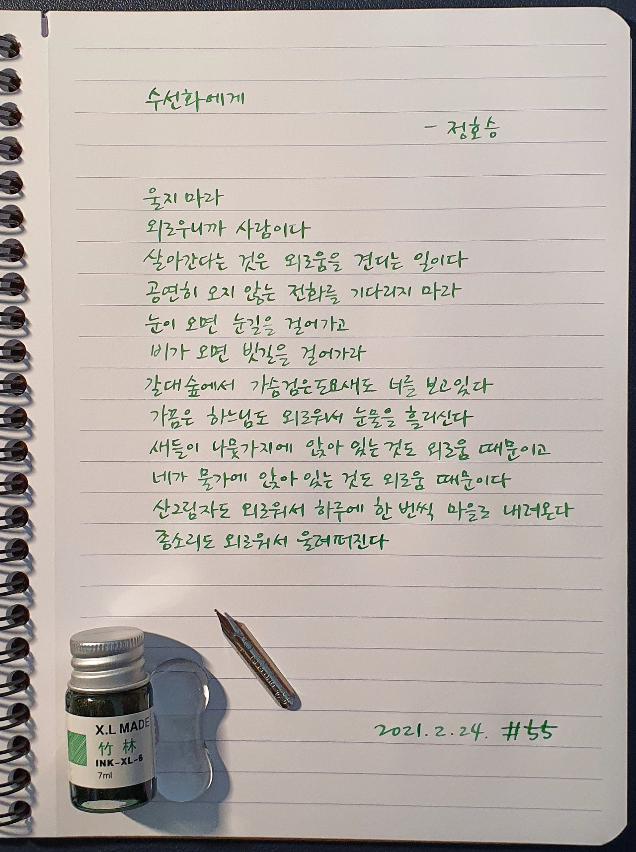 #수선화에게 #정호승 #시필사 #닙펜 #딥펜 #펜글씨 #손글씨 #매일시쓰기 #1일1시 #하루에시한편 #이른아침을먹던여름 #thatsummerwithyou