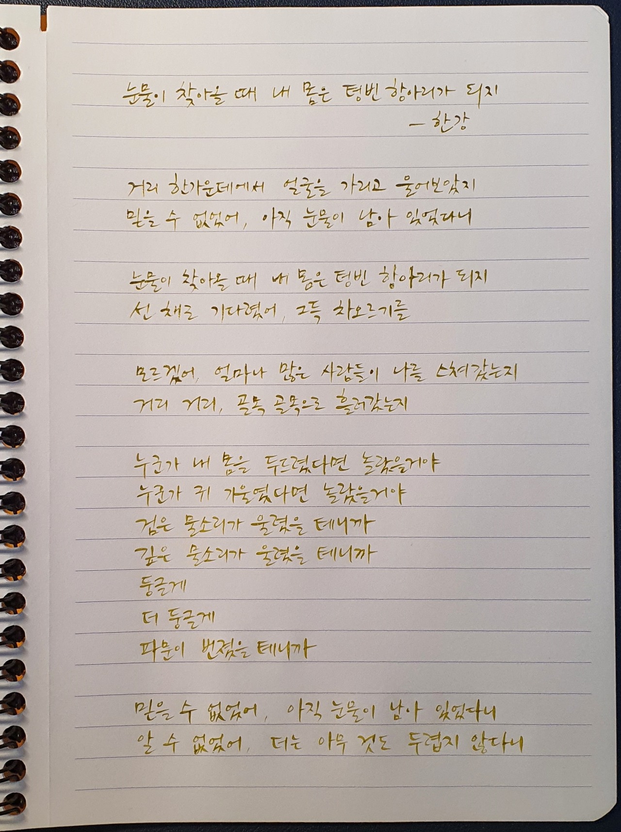#눈물이찾아올때내몸은텅빈항아리가되지 #한강 #시필사 #닙펜 #딥펜 #펜글씨 #손글씨 #매일시쓰기 #1일1시 #하루에시한편 #이른아침을먹던여름 #thatsummerwithyou