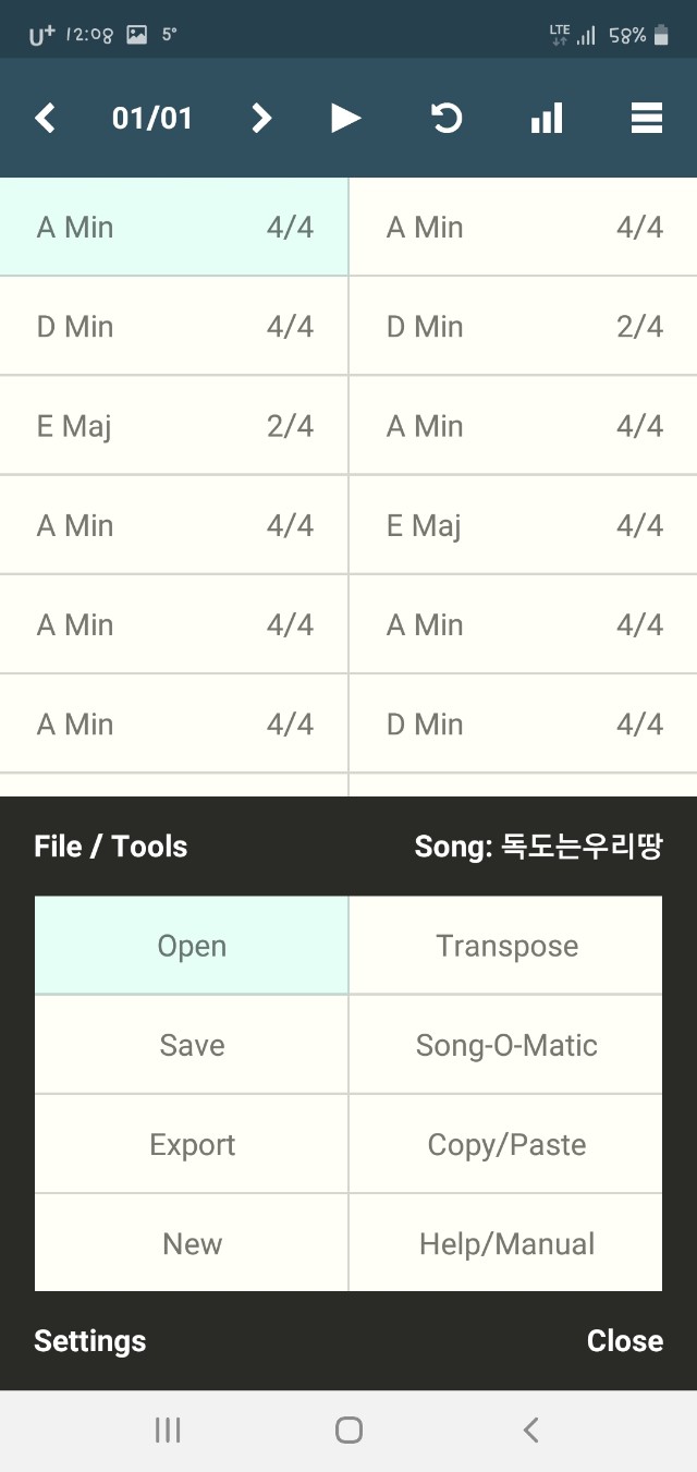 아주 간단하게 터치 몇번으로 코드와 박자를 입력합니다.