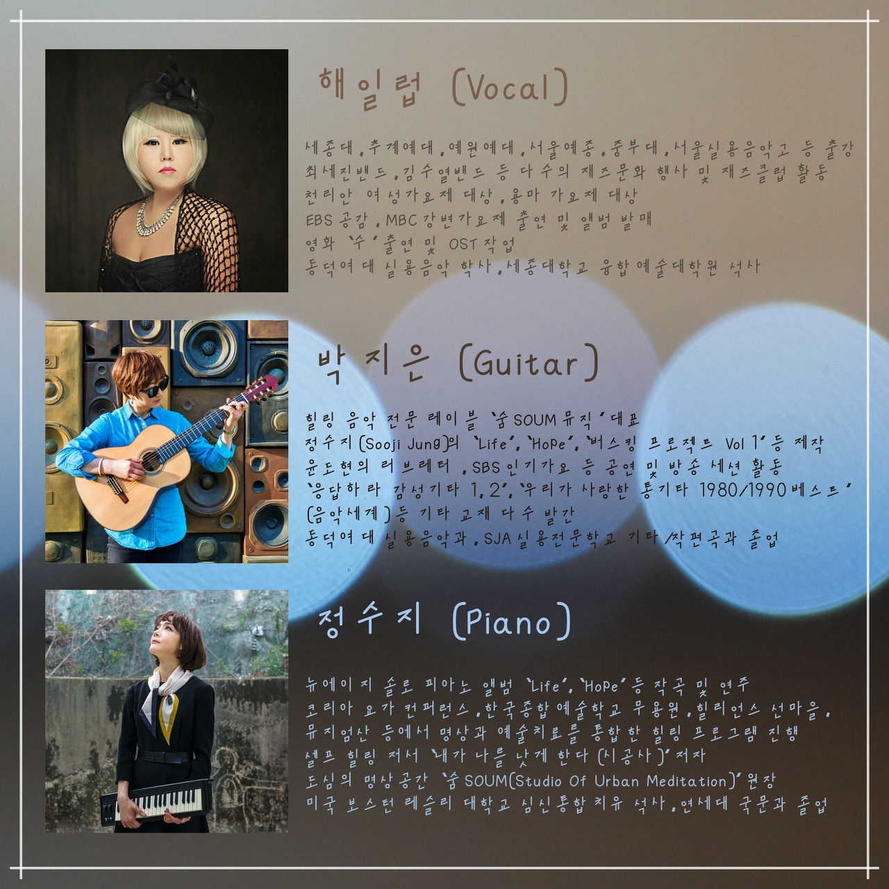 기타리스트 박지은. 피아니스트 정수지. 재즈보컬 해일럽.