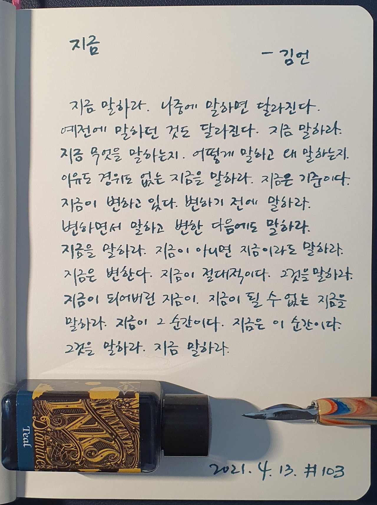 #지금 #김언 #시필사 #닙펜 #딥펜 #펜글씨 #손글씨 #매일시쓰기 #1일1시 #하루에시한편 #이른아침을먹던여름 #thatsummerwithyou