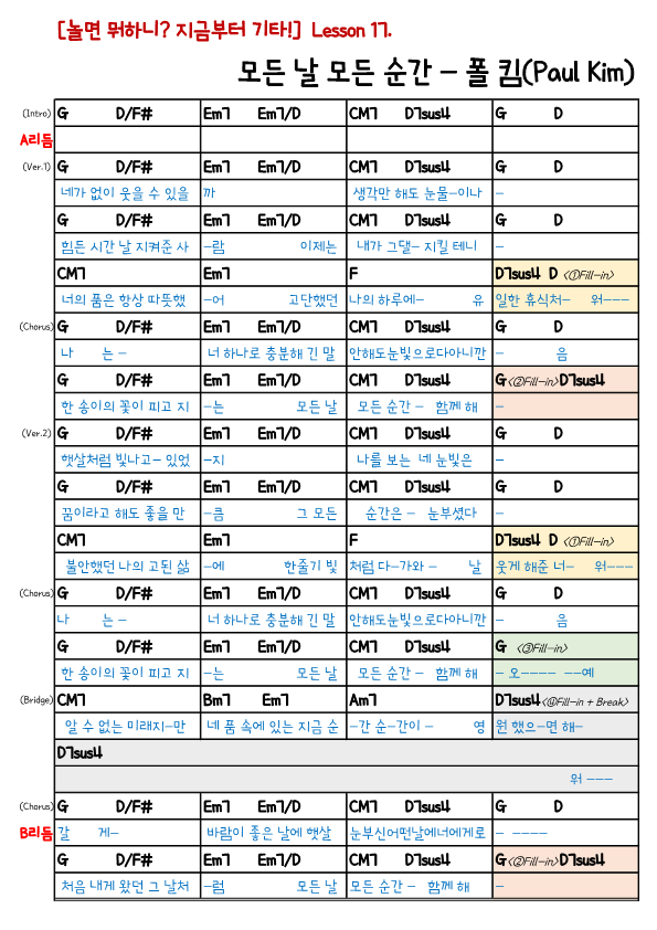 오늘은 폴 킴의 '모든 날 모든 순간'의 코드 연습을 해볼게요.