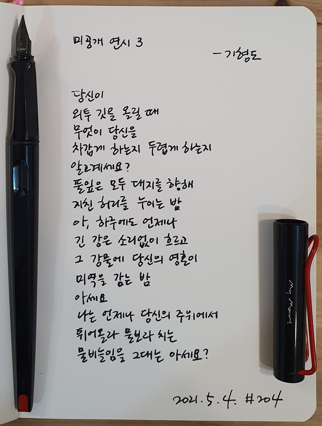 #미공개연시3 #기형도 #만년필 #라미 #펜글씨 #손글씨 #시필사 #매일시쓰기 #1일1시 #하루에시한편 #이른아침을먹던여름 #thatsummerwithyou #나의화성 #MyMars